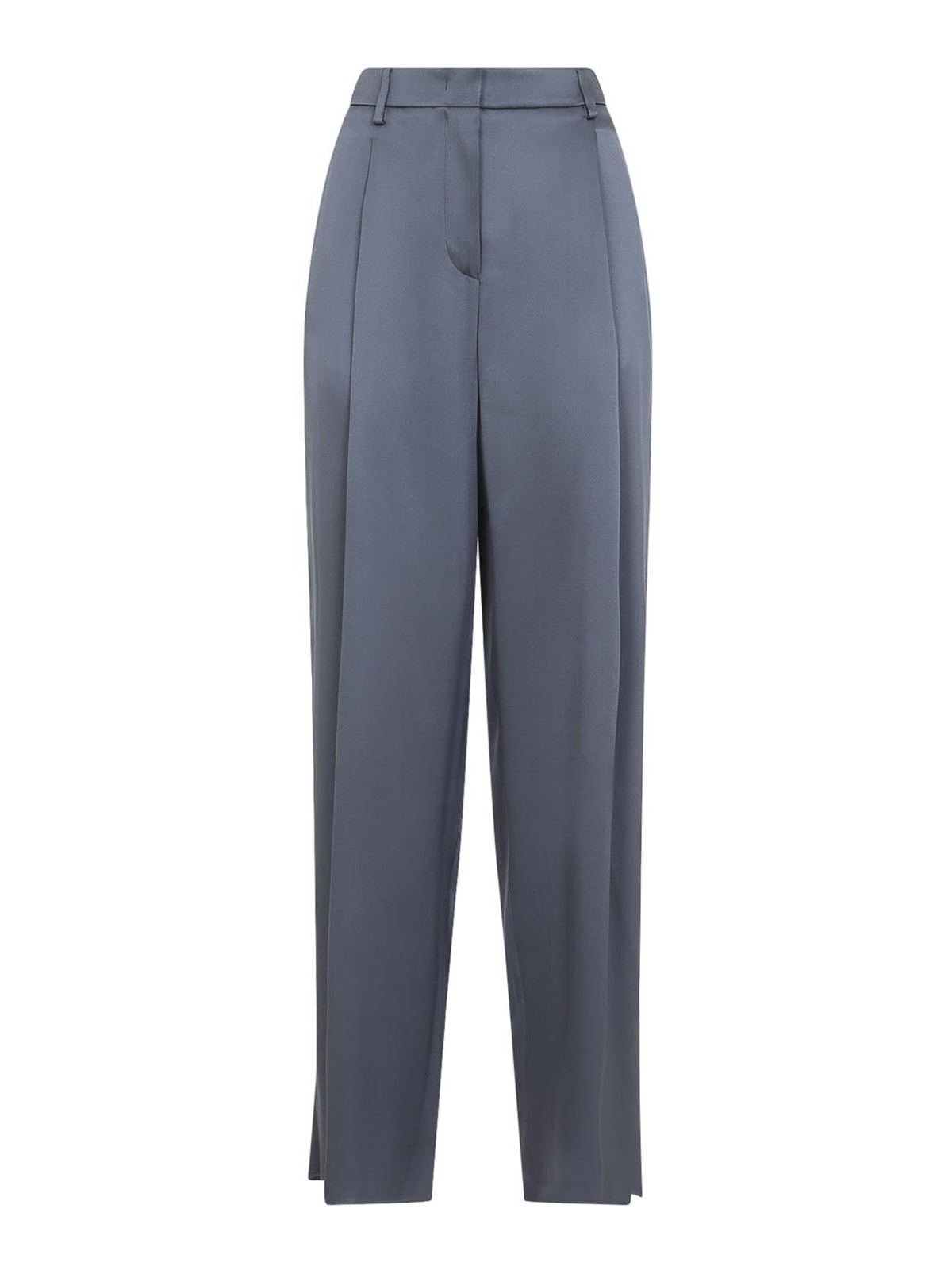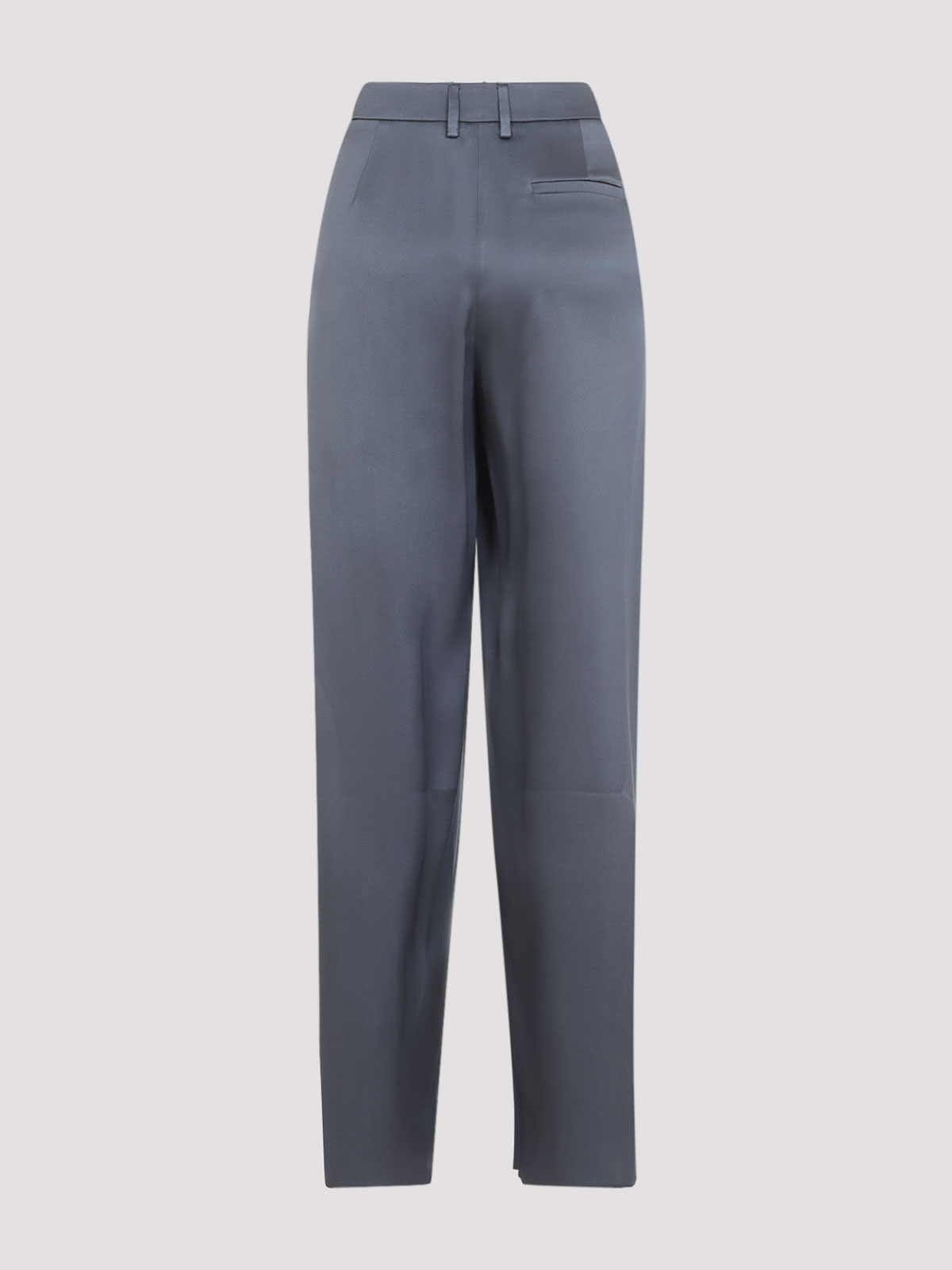 ジョルジオアルマーニナインアイアングレーシルクトラウザーズ。ピュアナインアイアンシルクパンツ、前面隠しファスナーとフック留め、ベルトループ、サイドポケット、バックスリットポケット、ストレートヘム。