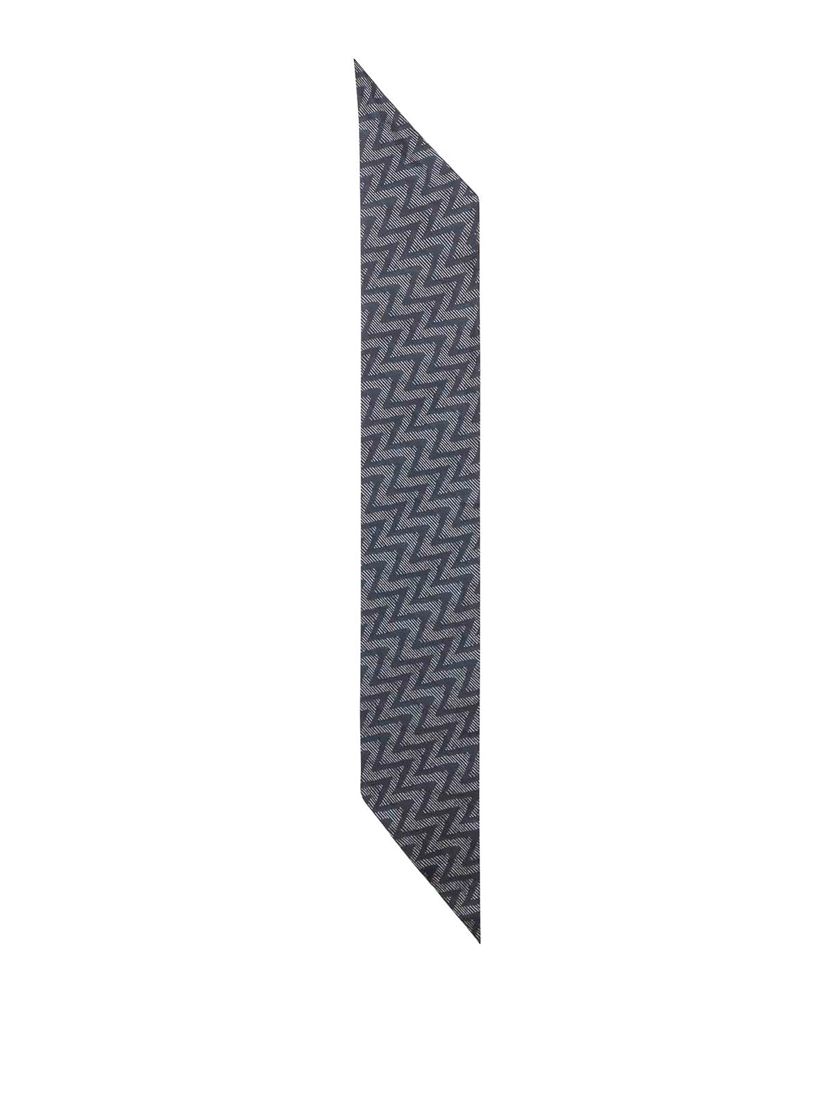 ロングテーパードスカーフ、全面幾何学模様ジグザグ模様、エッジ仕上げ、100% シルク、色:ミッドナイトブルー