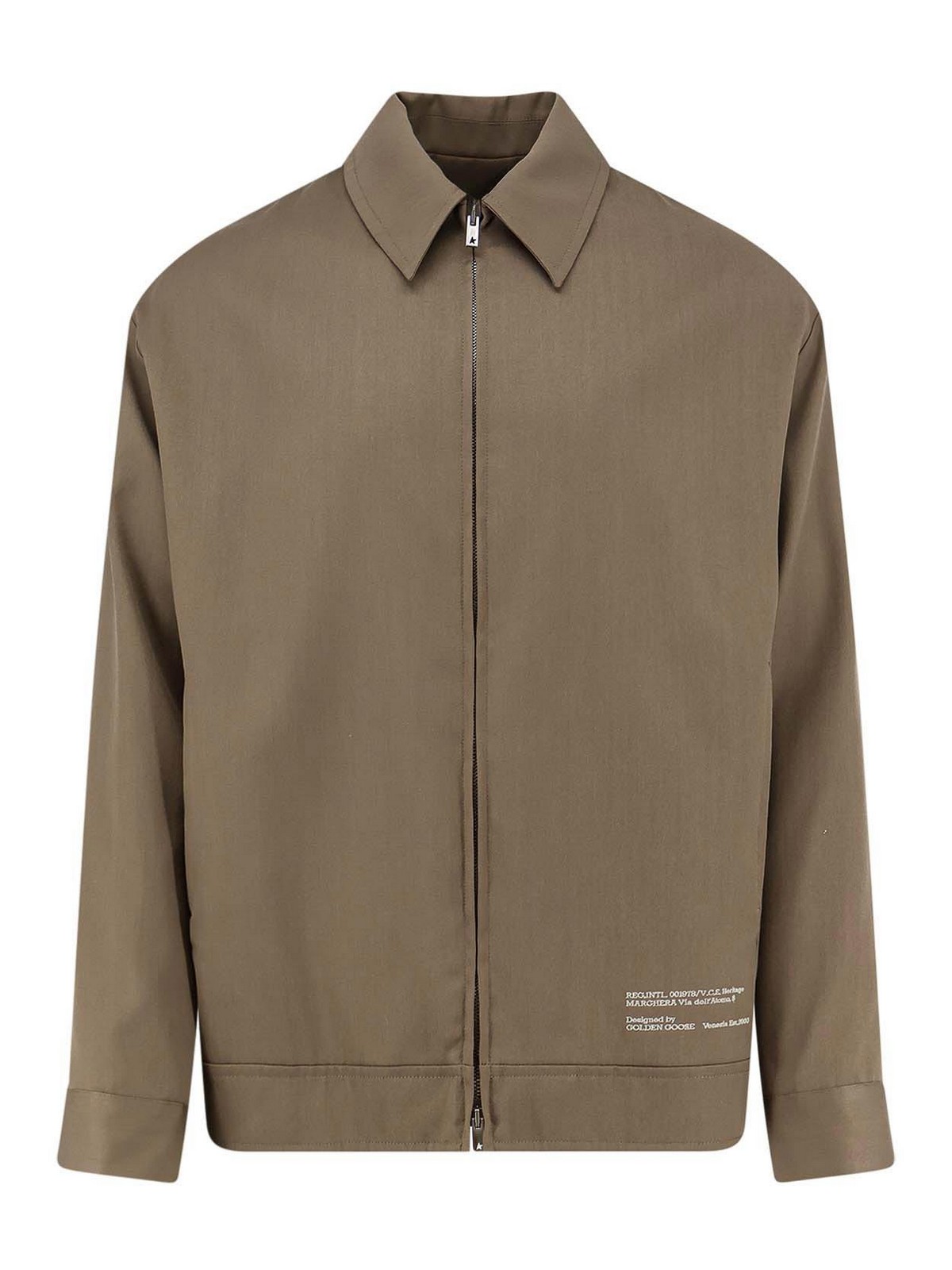 ファスナーとダブルスライダークロージャー、ポインテッドカラー、サイドウェルトポケット2つ、背面にアイコニックなメタルスター、フロント刺繍、イタリア製、ウール 75% コットン 25%、裏地:コットン 100%。