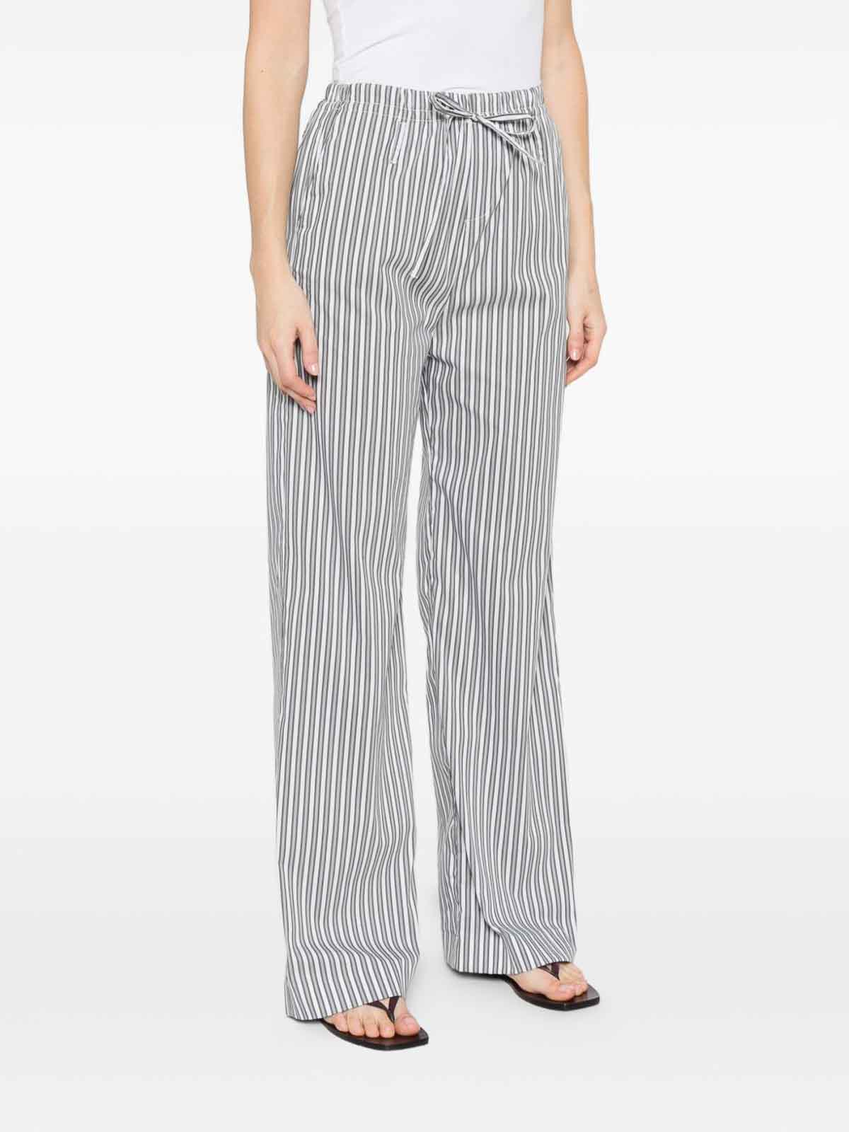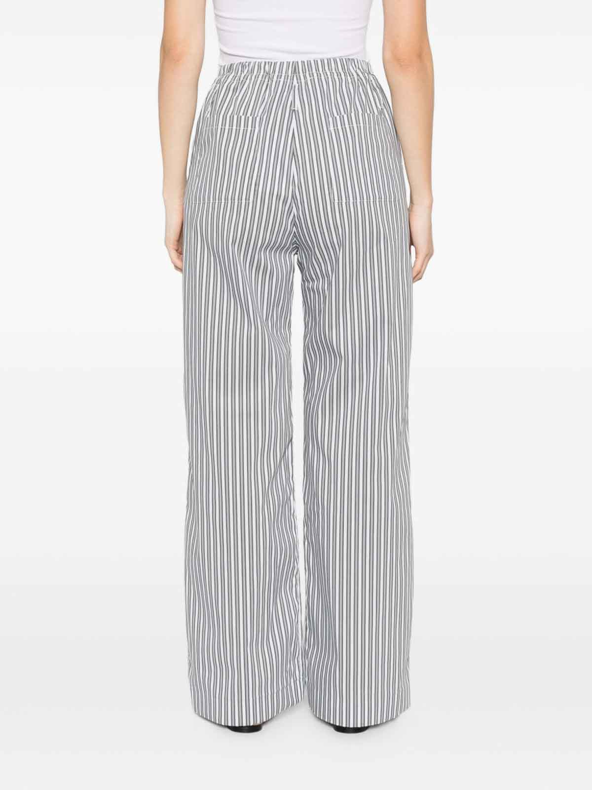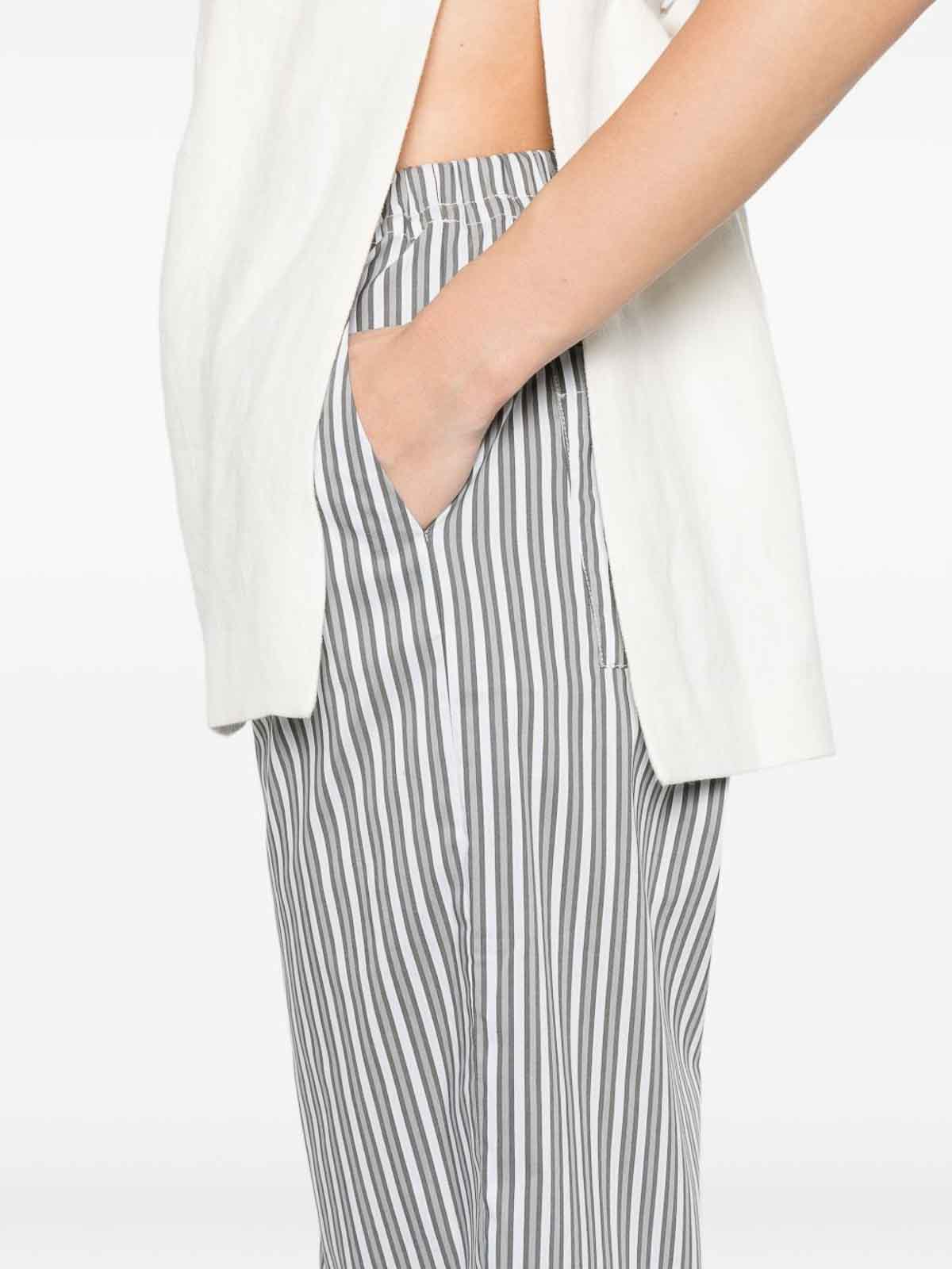 グレーとブルーのストライプ柄ドローストリング留めゴム入りウエストバンド