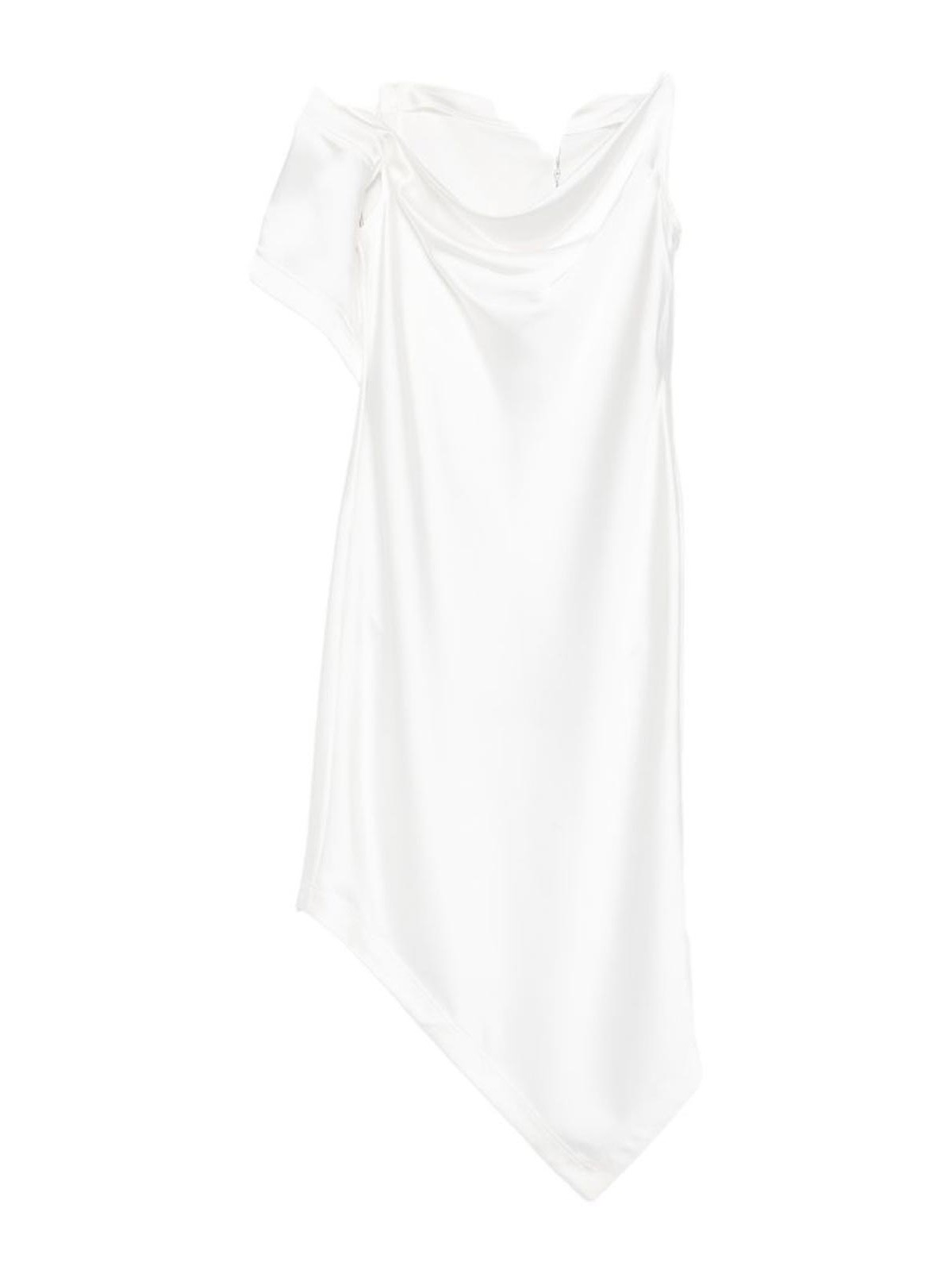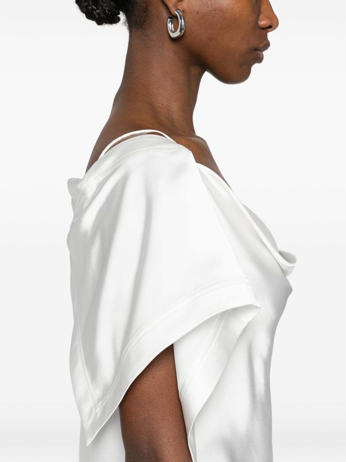 ホワイトドレープディテールアシンメトリーデザインスパゲッティストラップカウルネック