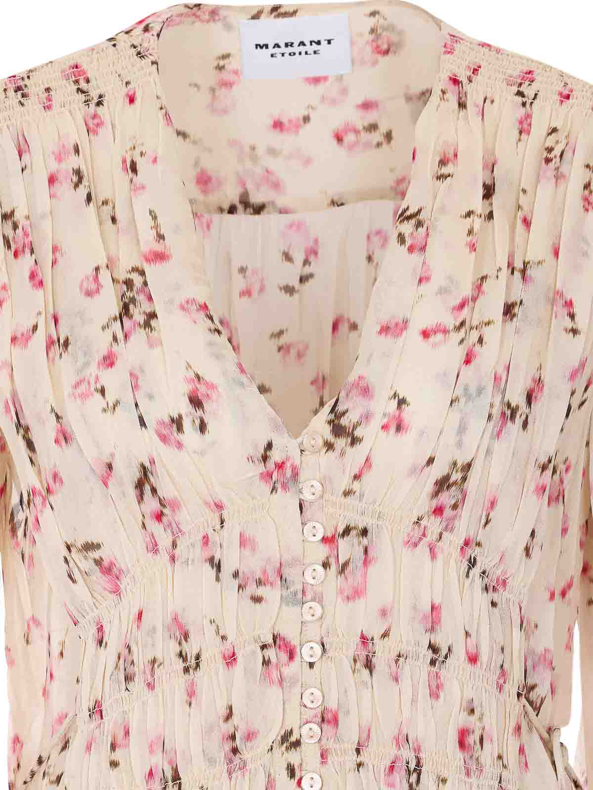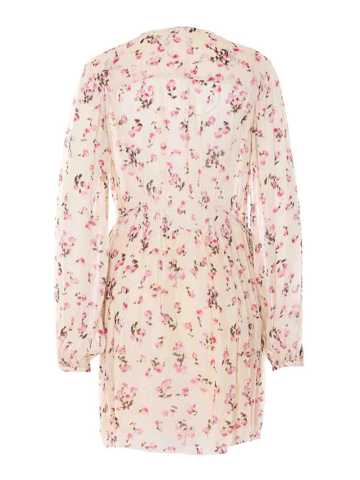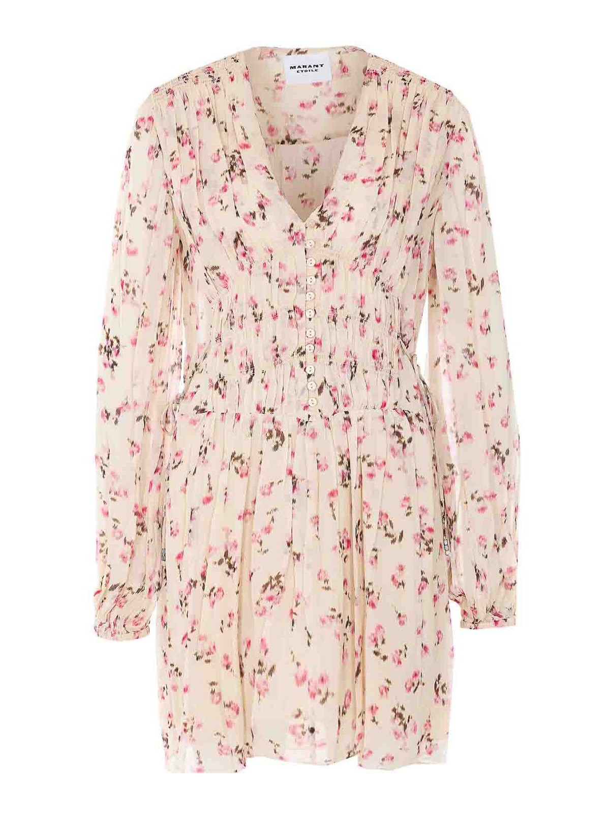 イザベルマランエトワールベージュロリエナドレス、Vネック、ロングスリーブ、フロントボタン留め、ウエストにクーリス、花柄