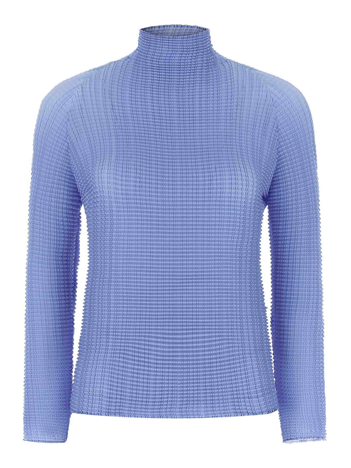ウールプリーツ-ハイネックでロングスリーブの66フィートプリーツブラウス。