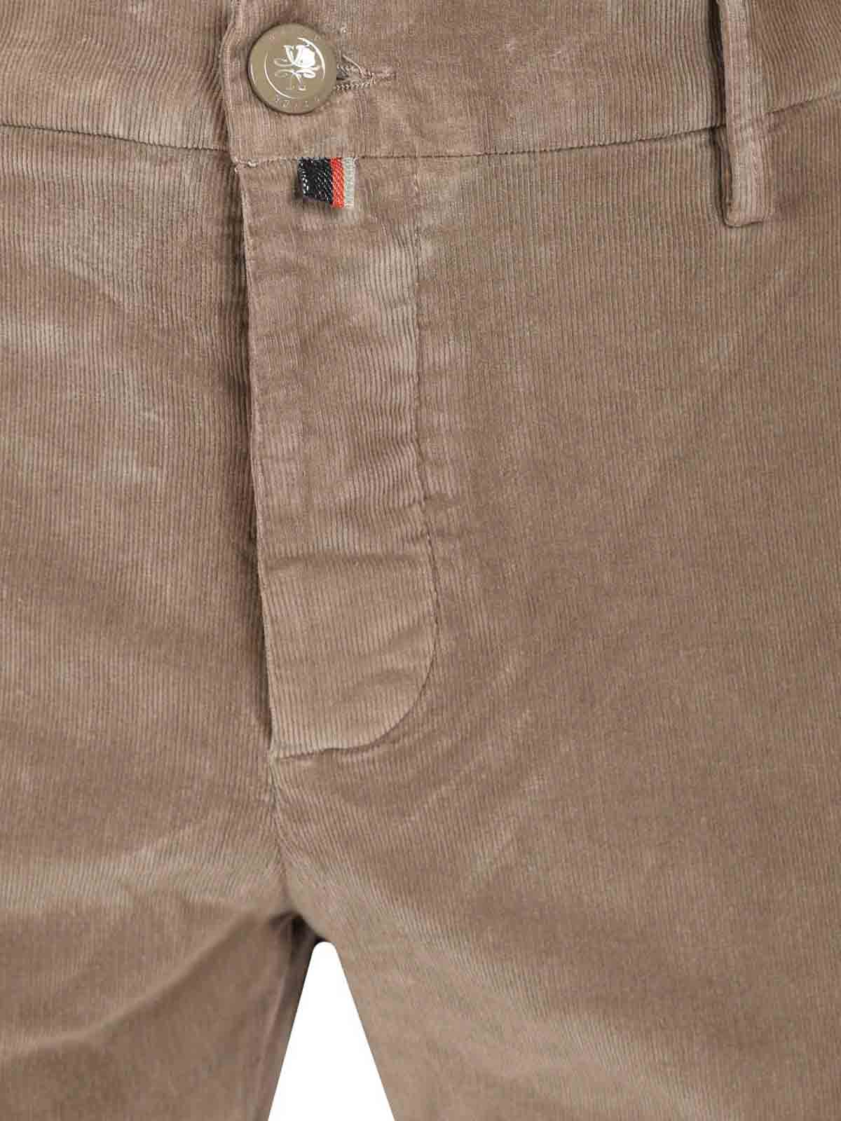 Jacob cohenのスリムフィットコーデュロイパンツ。ベルトループ、ボタンとジップフライファスナー、サイドとバックのウェルトポケットが特徴です。