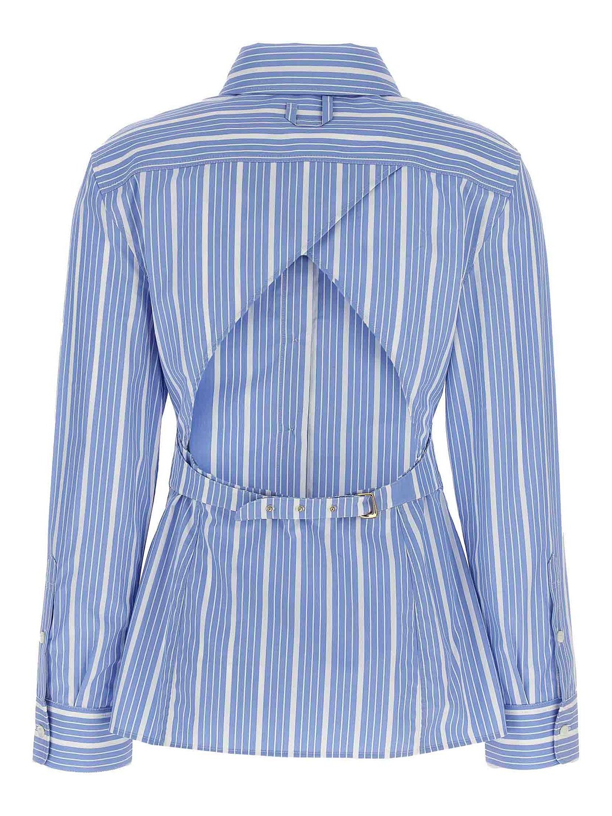 chemise de cost.mes ' コットンポプリンシャツ、ジャカードロゴ、フロントボタンクロージャー、ロングカフスリーブ、バックカットアウトディテール、調節可能なストラップ付き