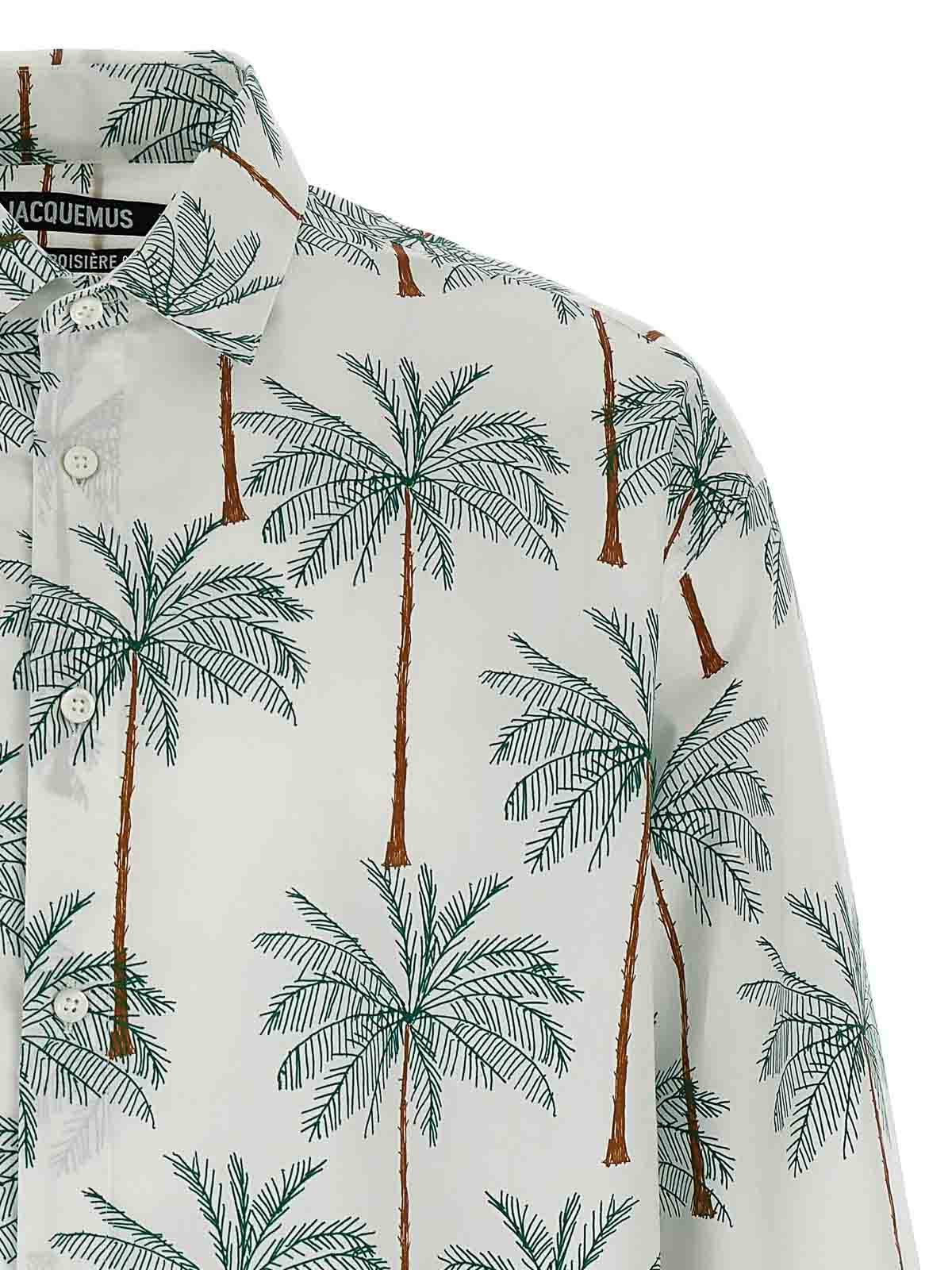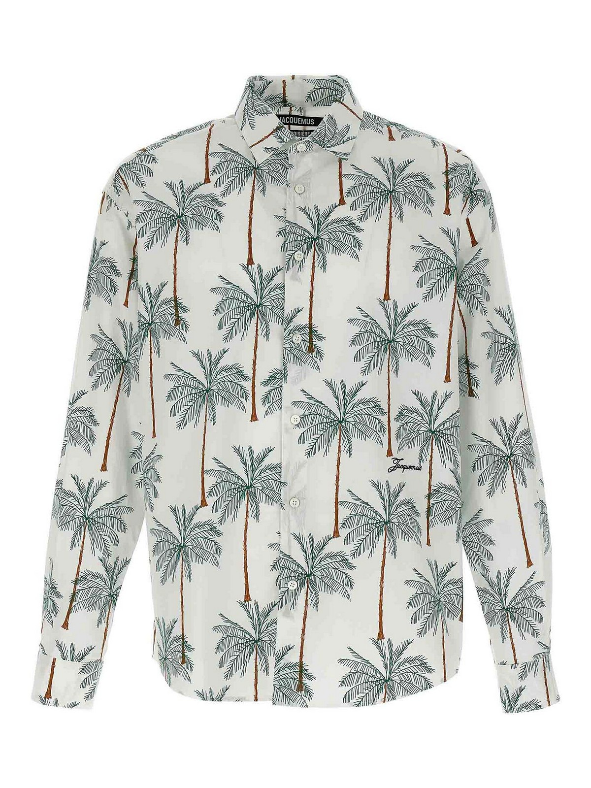 la chemise Simon' オールオーバープリントコットンポプリンシャツ、ロゴ刺繍、フロントボタンクロージャー、カフスとドロップショルダー付きロングスリーブ、サイドスリット
