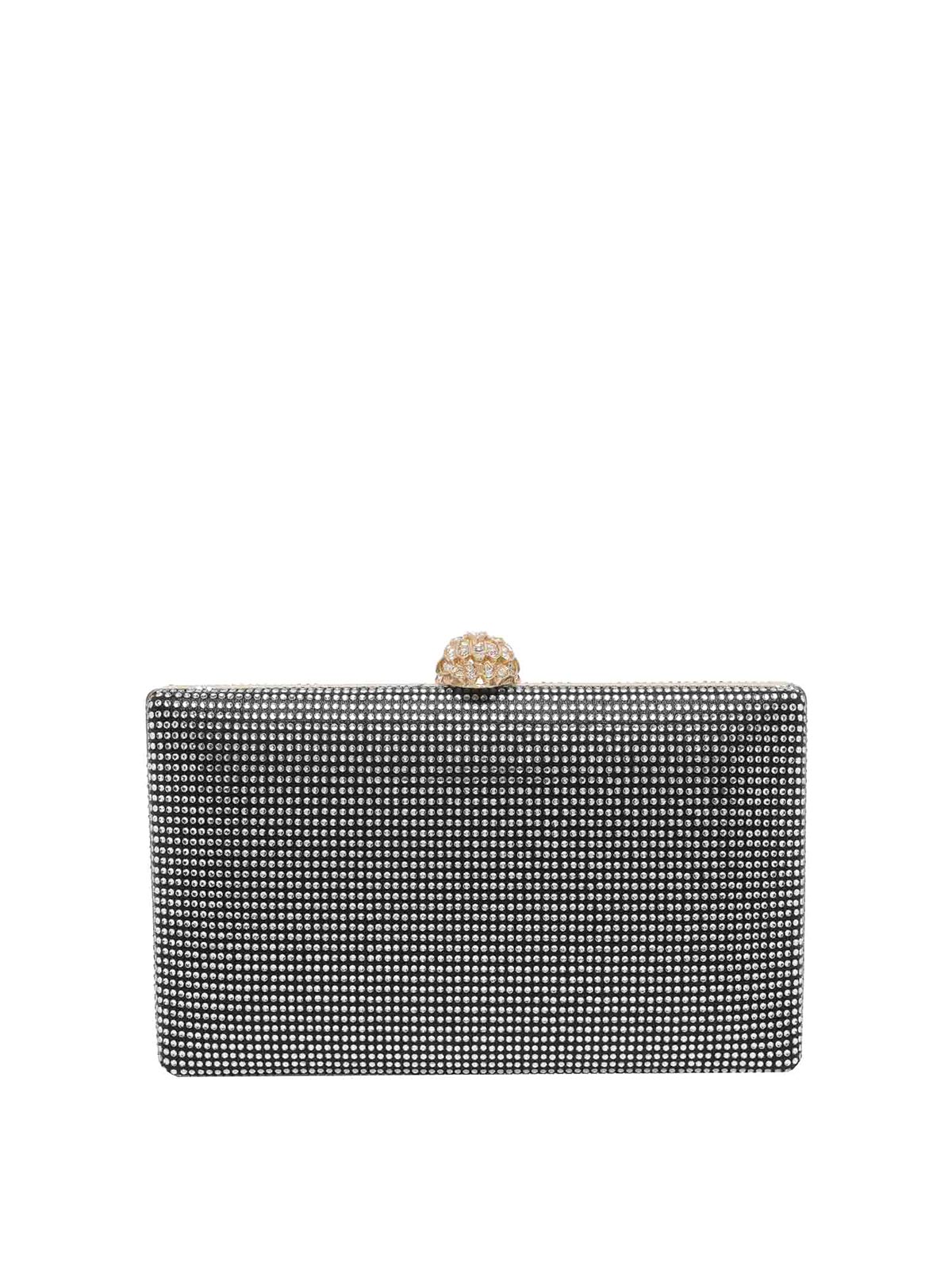 Kurt Geiger ブラッククリスタルケンジントンクラッチ、取り外し可能、チェーンストラップ、スナップクロージャー