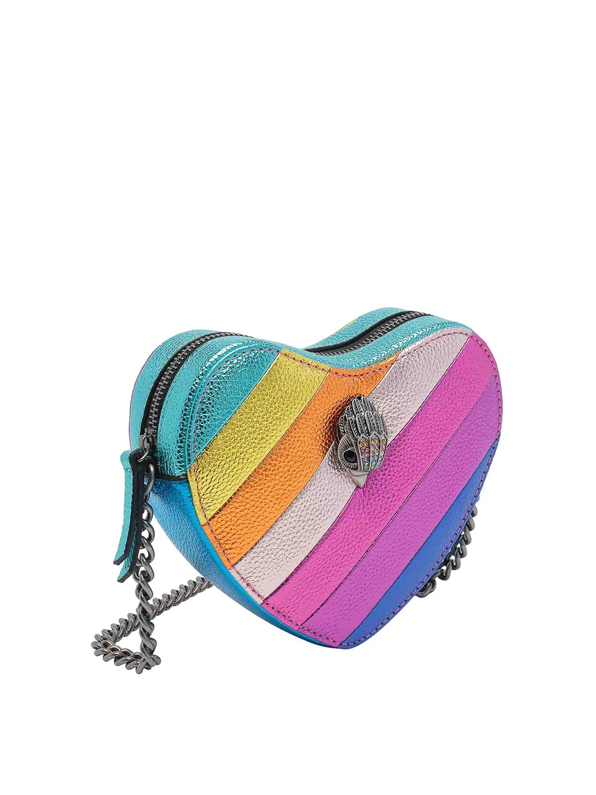 Kurt Geiger マルチカラーケンジントンハートクロスボディバッグ、ファスナー開閉、チェーンストラップ