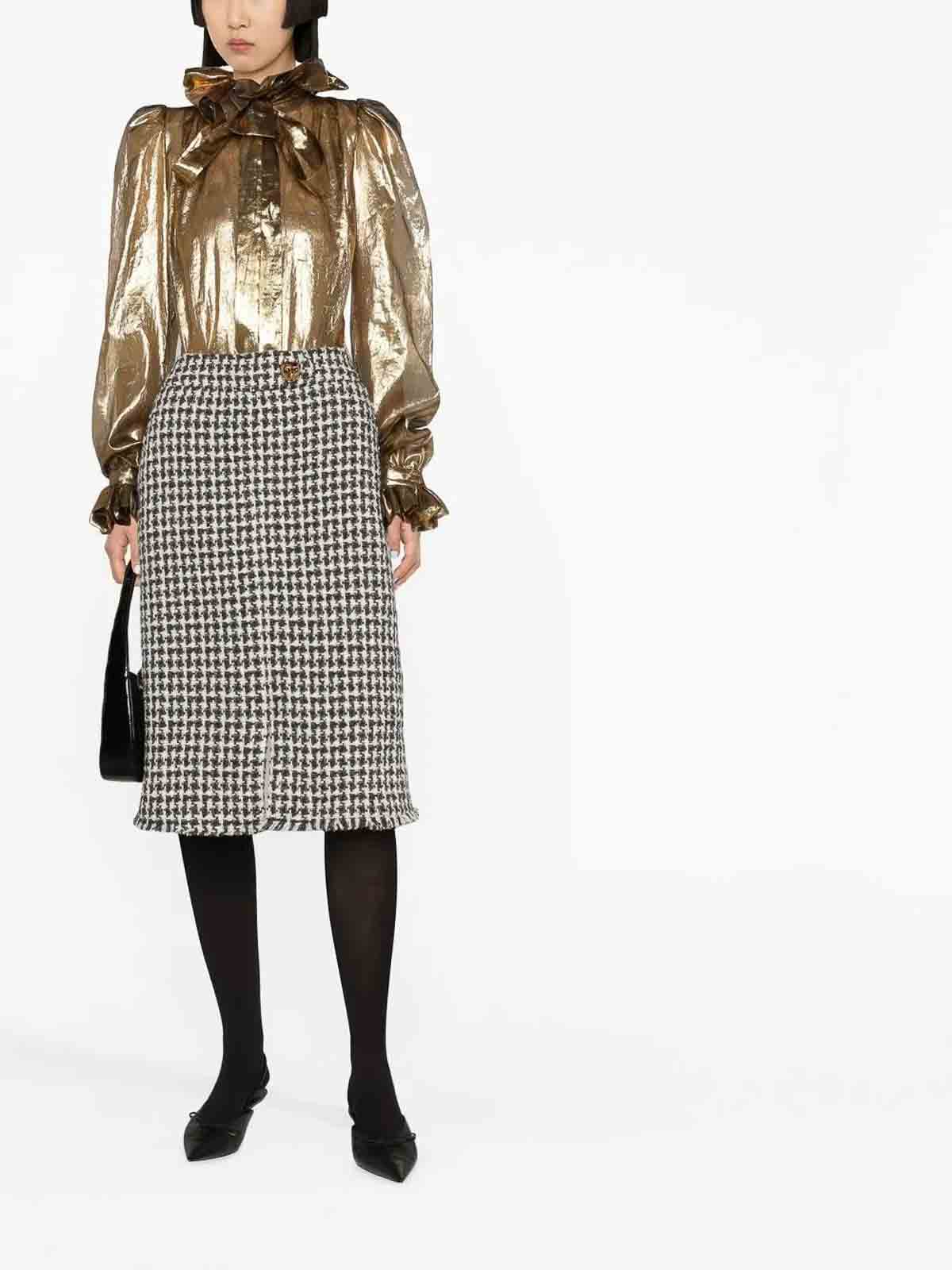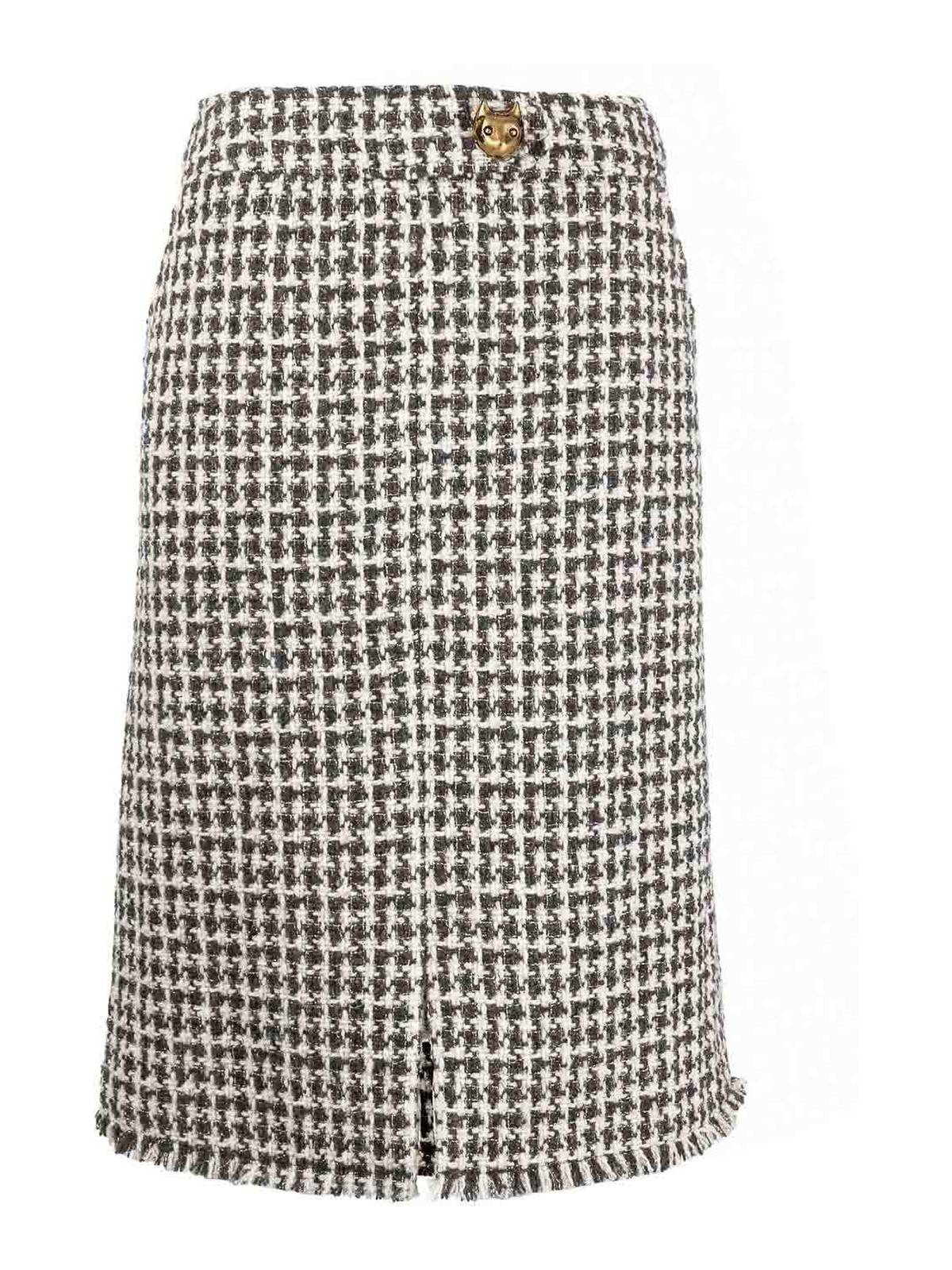 メーカーカラー:エクリュ/ブラックブレンドツイード、トーンハードウェア、背面にスリット、膝、長さ