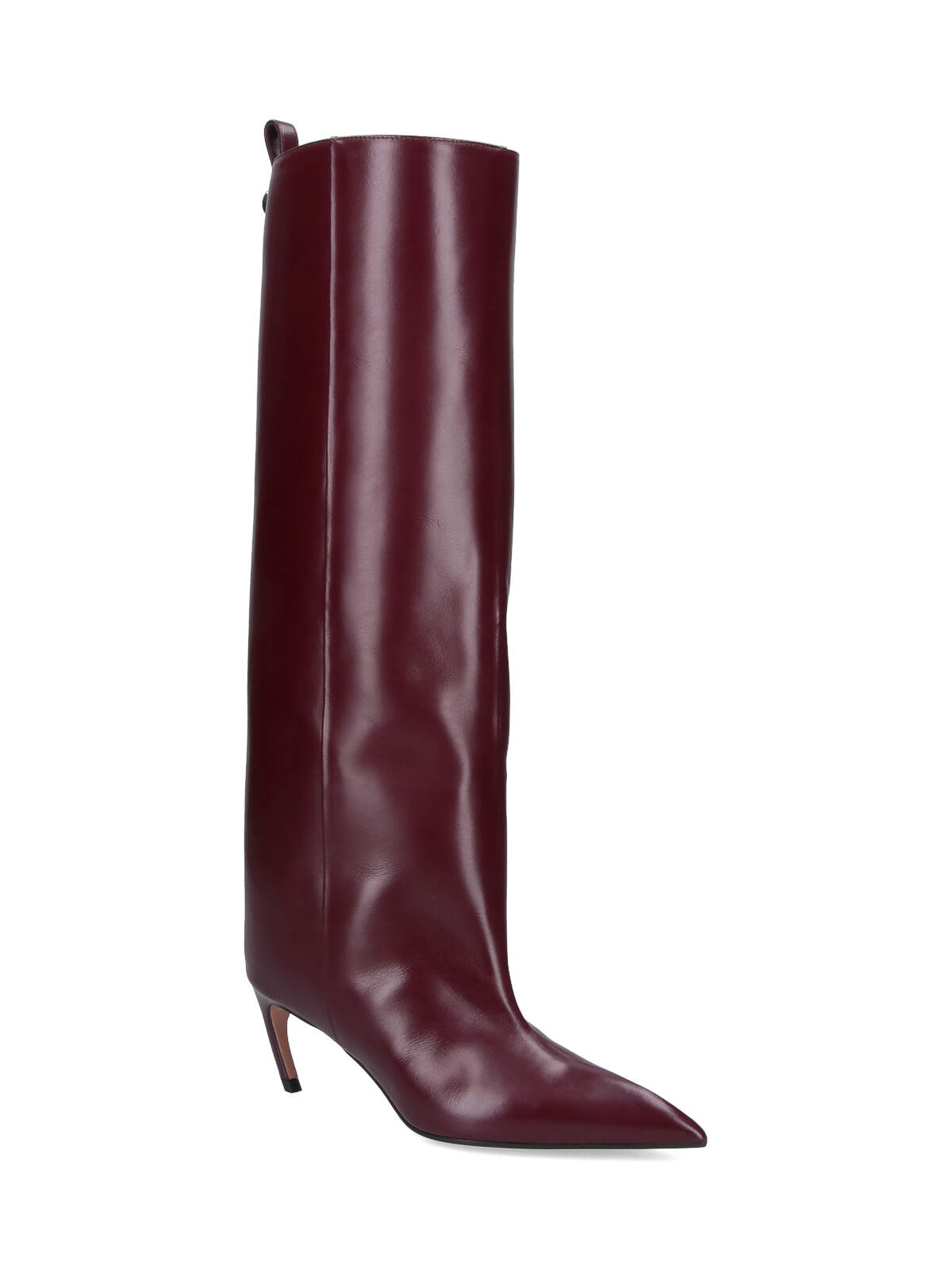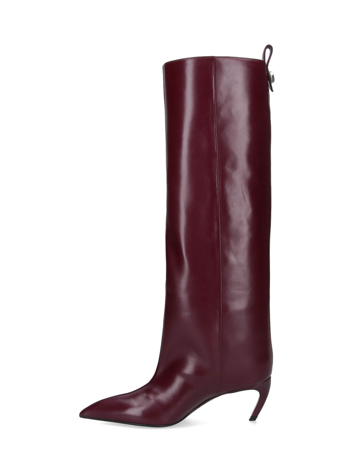 Lea the Atticoブーツ、ブラウンカーフスキン、ポインテッドトゥ、バックタブにチャーム、スリッポンフィット、スティレットヒール、レザーソール。