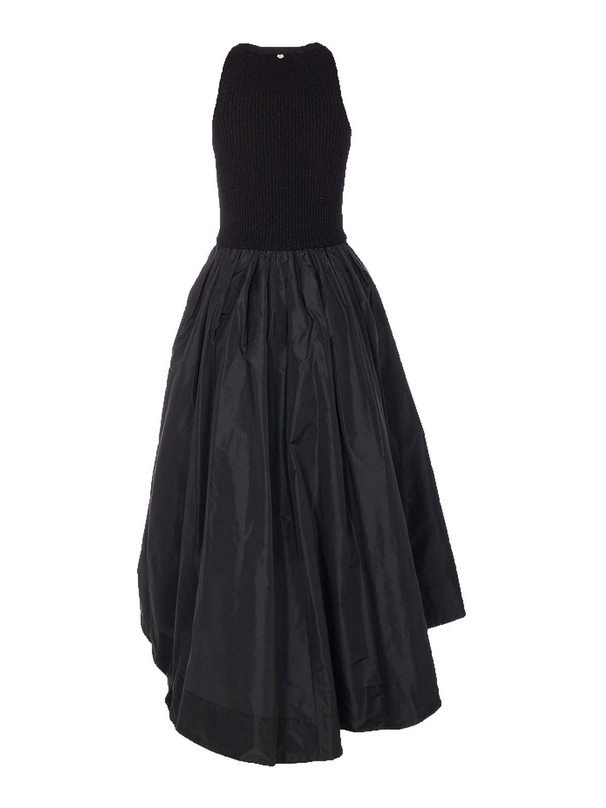 Liu Jo ブラックドレス、ノースリーブ、ニットルレックストップ、ワイドスカート、アシンメトリーモデル