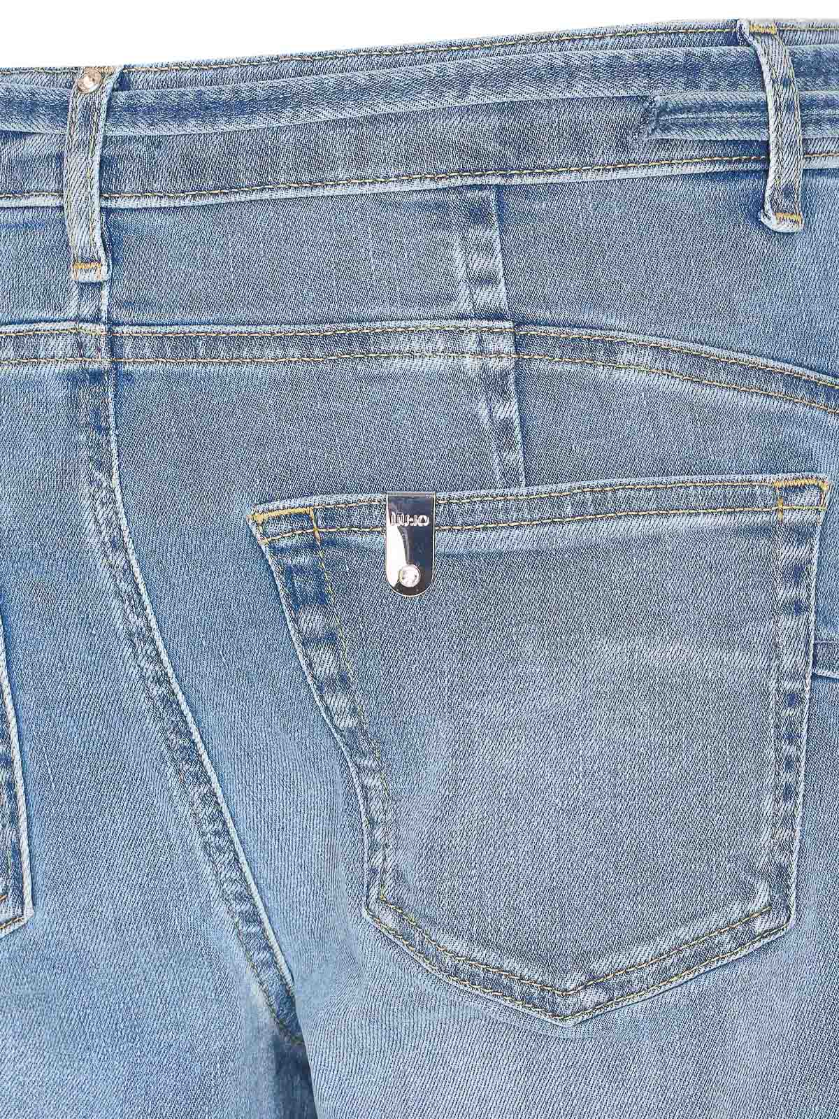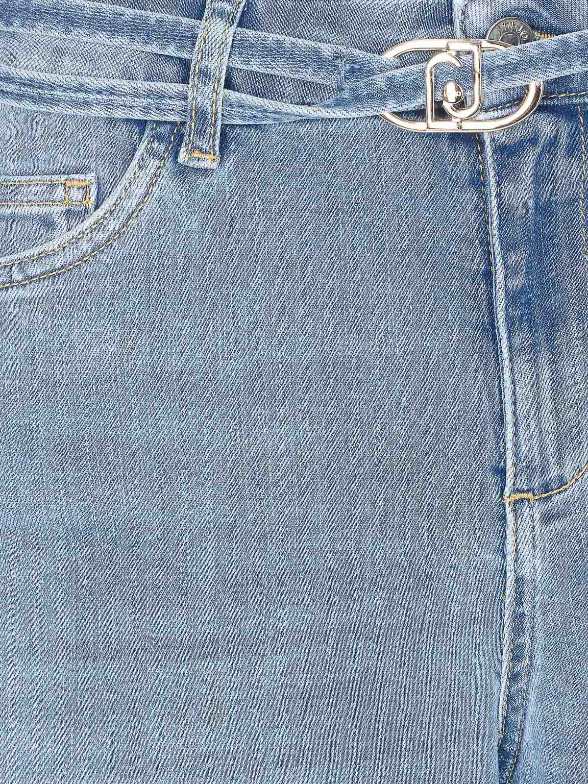 Liu Jo ボタンとジッパー付きデニムジーンズ、ウエストにベルト、ポケット5つ、スキニーフィット、裾にカフス