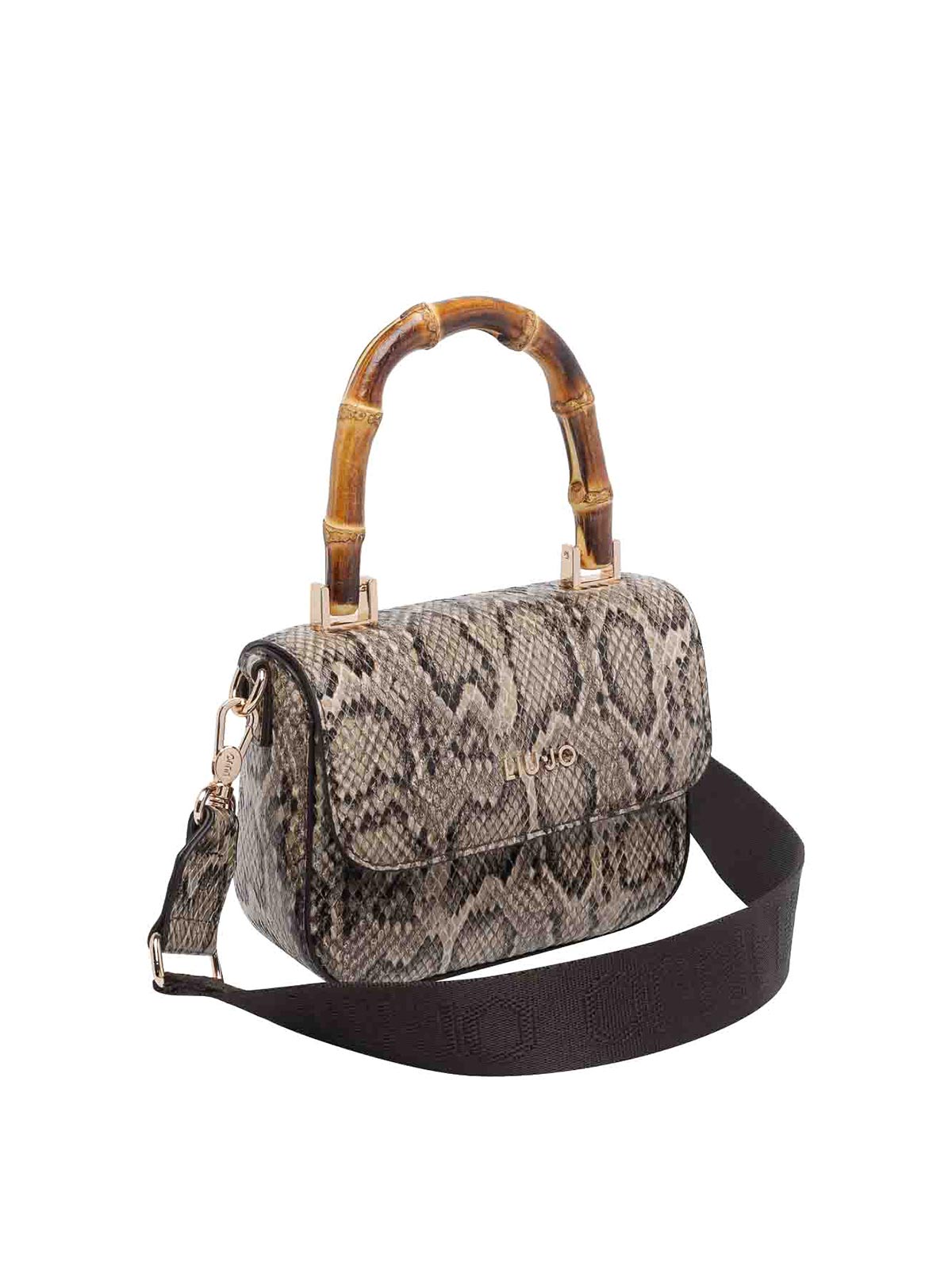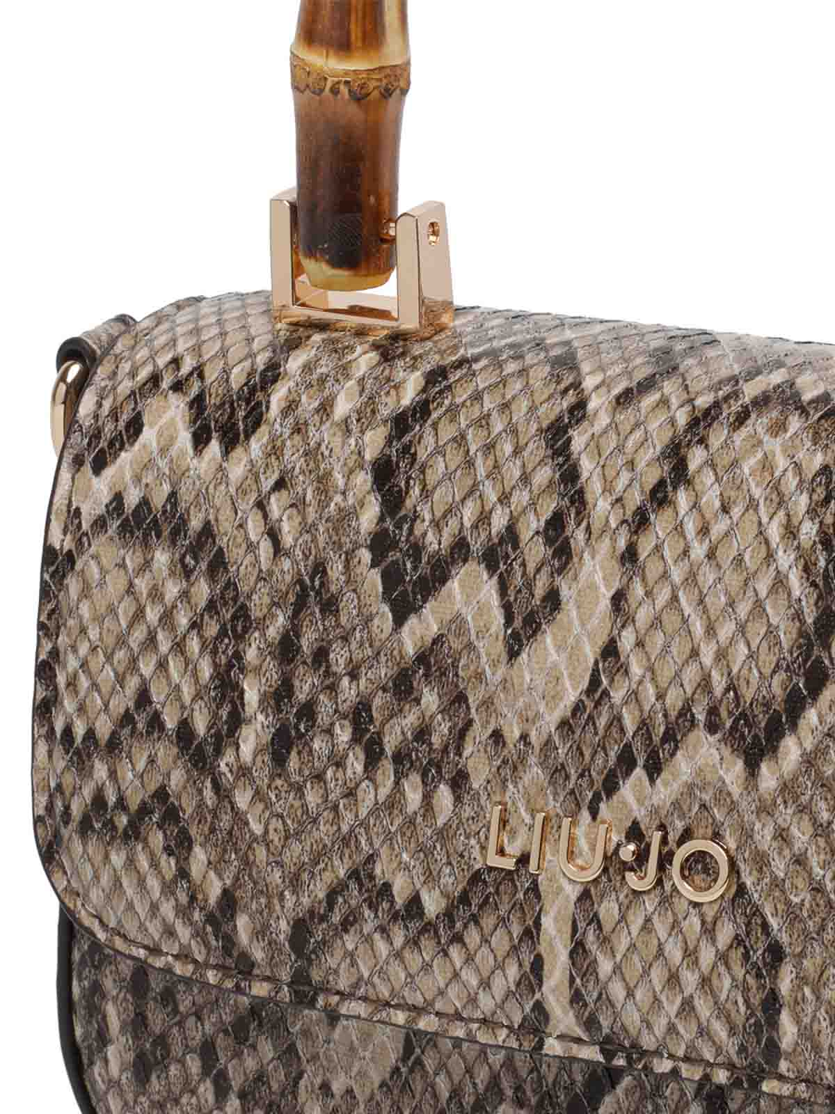 Liu jo グレークロスボディバッグ、パイソンプリント、プッシュロッククロージャー、ハンドル1つ、調節可能で取り外し可能なショルダーストラップ