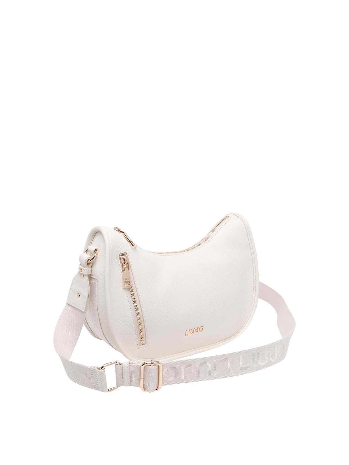 Liu Jo クリームロゴ入りクロスボディバッグ、ファスナー開閉、内側オープンポケット、ファスナー付き内ポケット、外側にファスナー付きポケット 2 つ、調節可能ストラップ、正面ロゴ