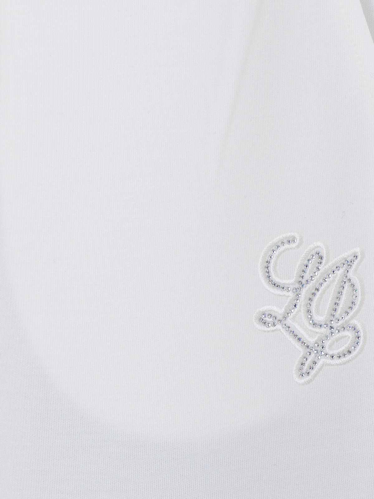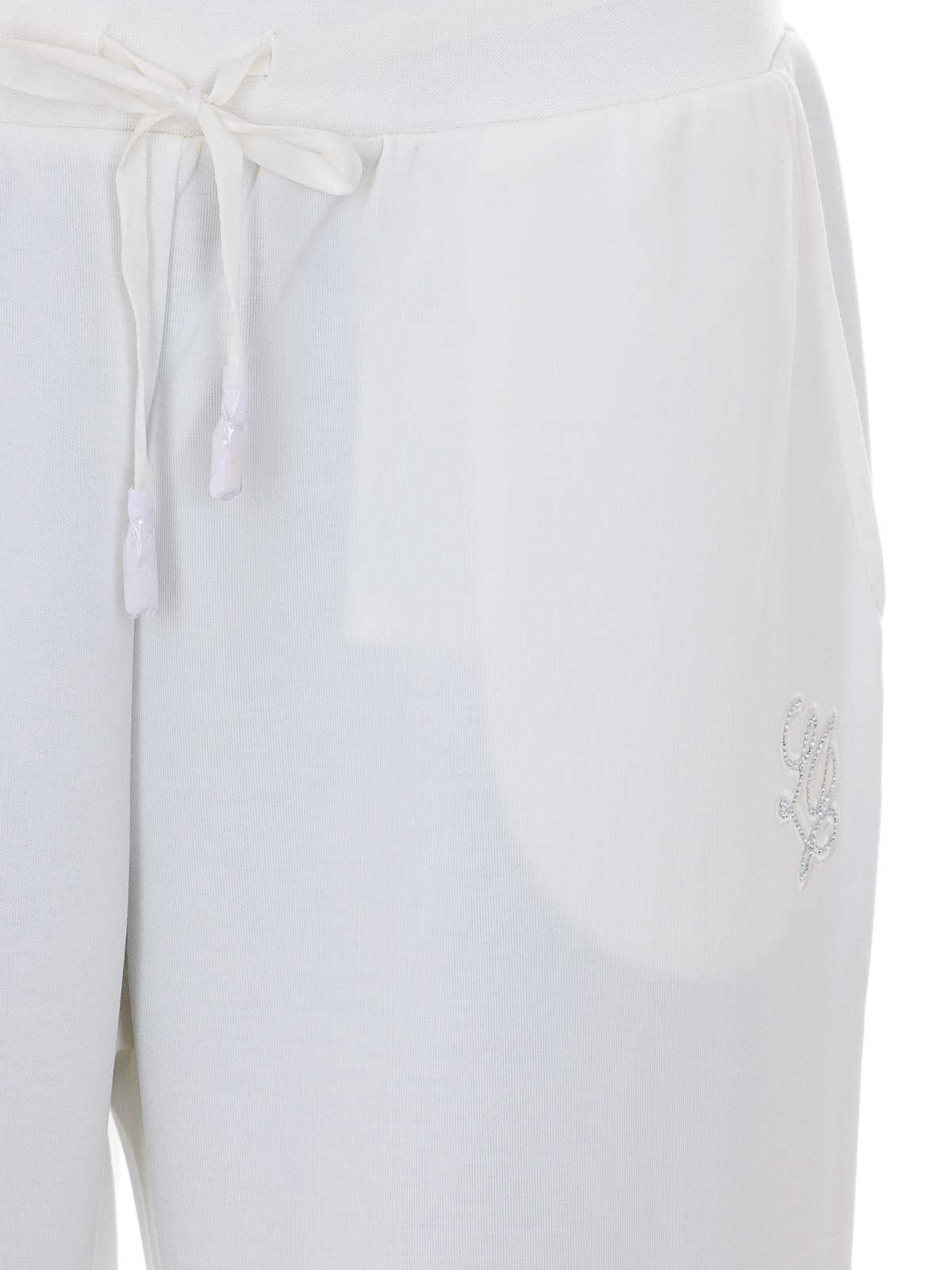 Liu Jo ミルクホワイトトラックパンツ、ドローストリングクロージャー、フロントにストラスロゴ、フロントポケット、ワイドレッグ