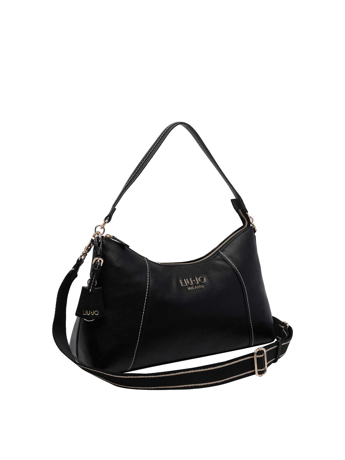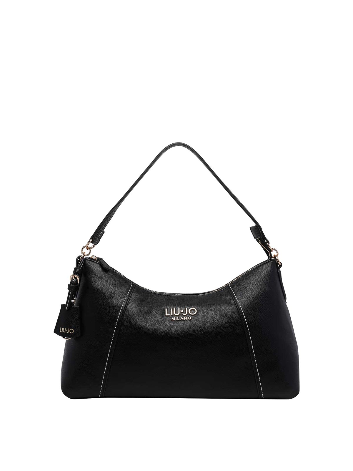 Liu Jo ブラックショルダーバッグ、ファスナー開閉、オープンポケット1つ、ハンドル1つ、調節・取り外し可能なショルダーストラップ、前面にロゴ