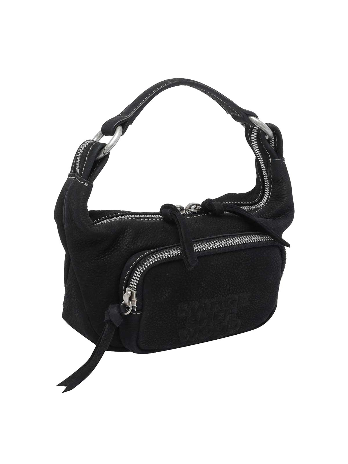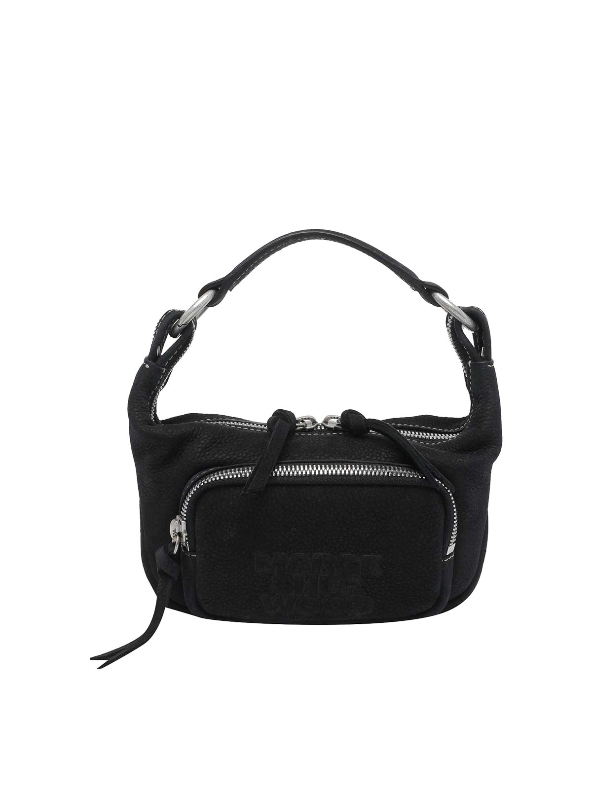 Margesherwood ブラックマイクロシティホーボーバッグ、ファスナー開閉、内側にオープンポケット、ハンドル1つ、前面にファスナー付きポケット