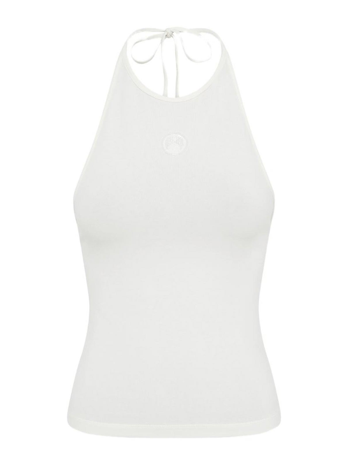 ホワイトコットンロゴディテールホルターネックストリングファスナーノースリーブ