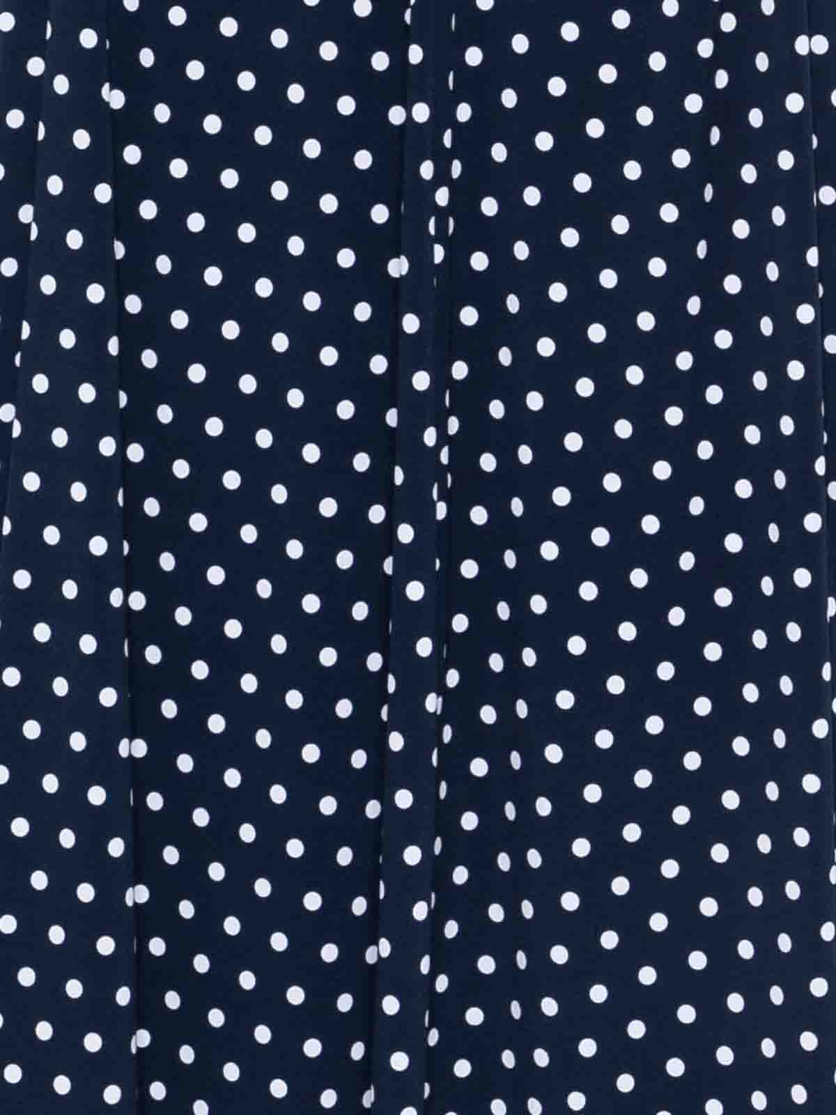 マイケル・コースの水玉模様とVネックをあしらったネイビーブルーのミディドレス。エレガントで現代的なデザインが特徴です。水玉模様、フリルのディテール、ノースリーブカット、ミディ丈が特徴で、洗練されたフェミニンなスタイルで、昼間のルックや特別な機会にぴったりです。