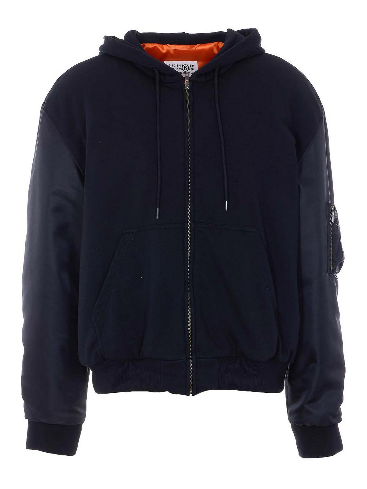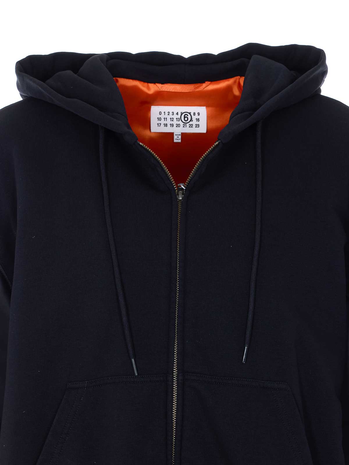 Mm6 maison margiela ブラックフード付きスウェットシャツ、正面ファスナー付き、長袖、ポケット、クーリス付きフード、パッド入り