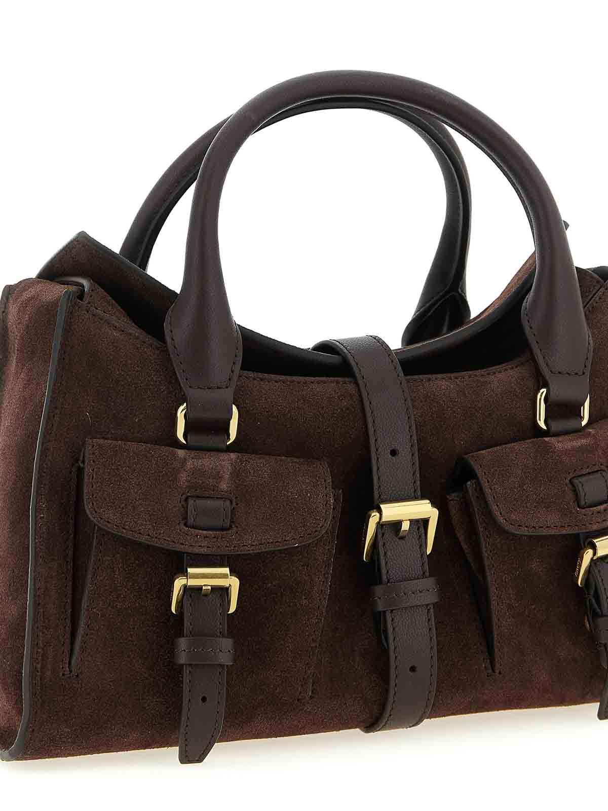 フラップクロージャーとフロントマグネット付きロクサーヌスモールスエードハンドバッグ、マグネットクロージャー付きの小さなポケット、ダブル固定ハンドル、調節可能で取り外し可能なショルダーストラップ。