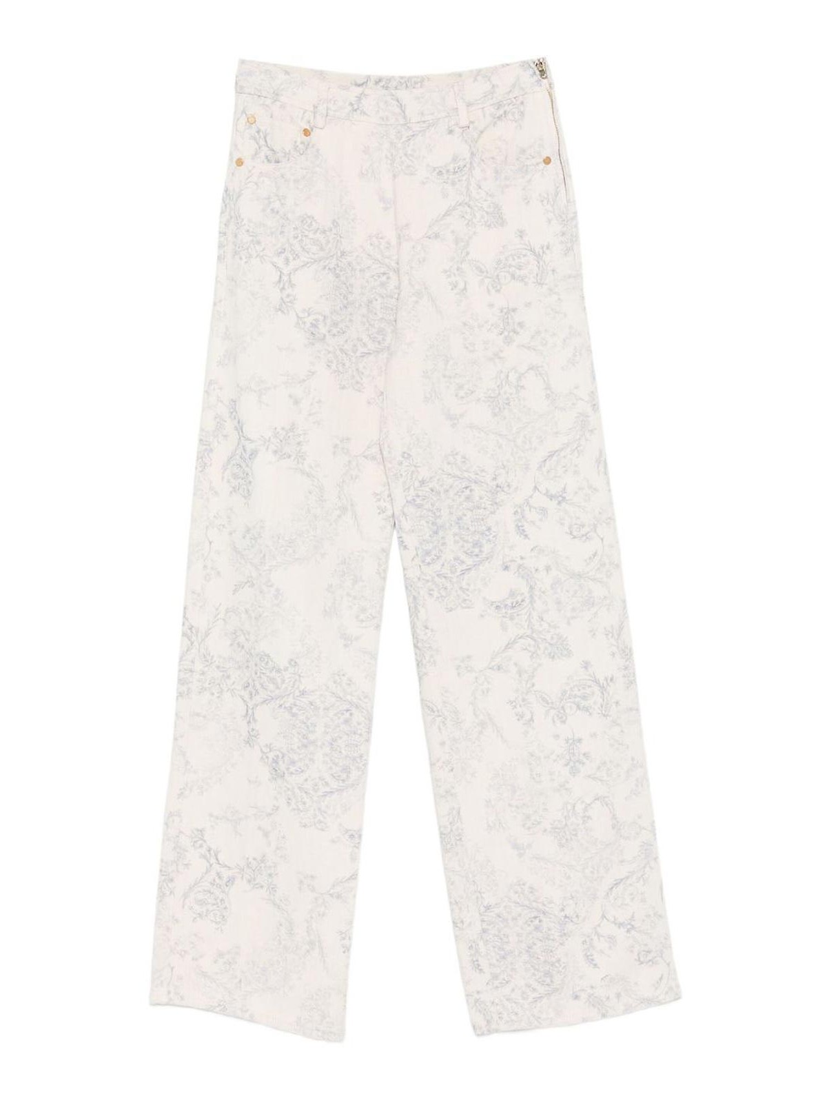 フォルテフォルテのパンツパンツは、アイボリーとライラックの色調のコットンでプリントされ、白とブルーの花柄とベルトループが特徴です。軽くて流れるようなデザインは、シルエットを現代的なエレガンスで引き立て、繊細な美学を備えたフェミニンで洗練されたルックスにぴったりです。
