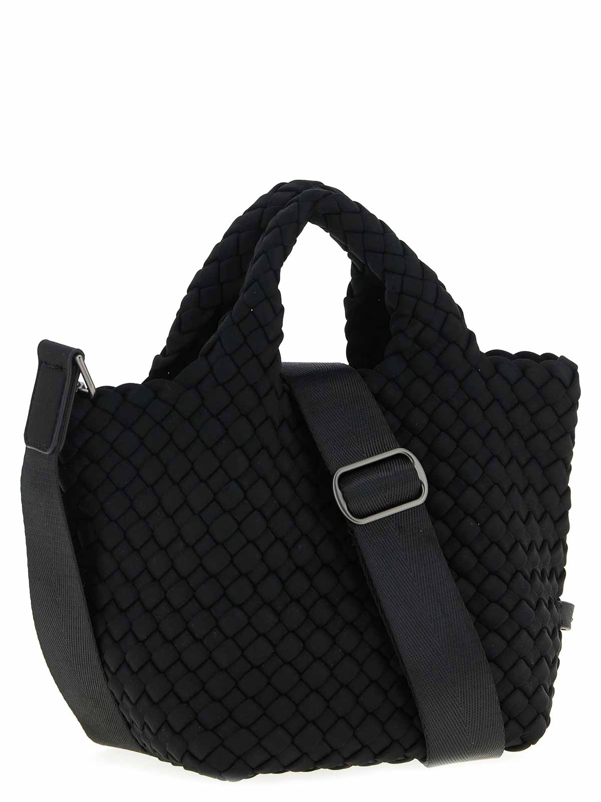 手織りネオプレンセントバースプチショッピング、ダブル固定ハンドル、サイドにトーン・オン・トーンのロゴパッチ、調節可能で取り外し可能なテープショルダーストラップ、取り外し可能なマッチングクラッチ。手作り製品なので、どんな欠陥もユニークさの特徴とみなされます。