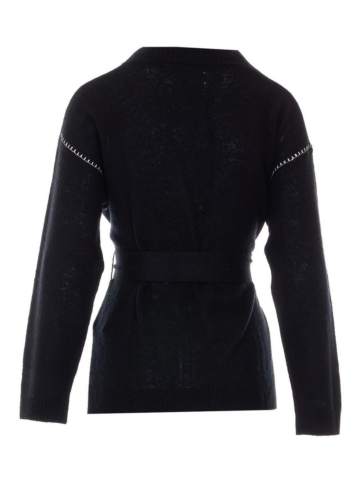 恥ずかしがらないブラックロリカーディガン、ウエストにベルト、長袖、Vネック