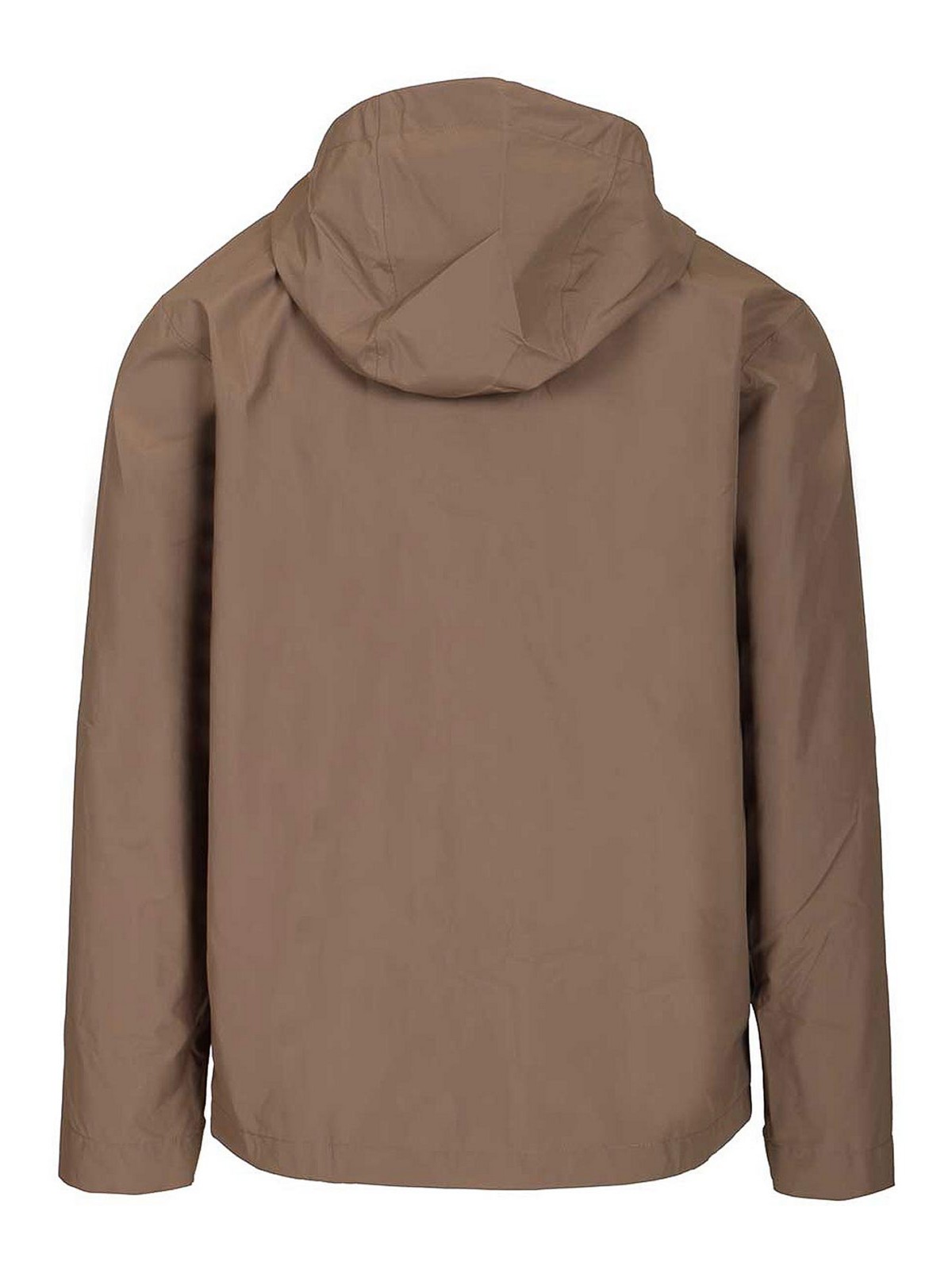 パタゴニア産リサイクルポリエステルを使用したカジュアルなレインジャケット、ドローストリングフード、ファスナーとスナップクロージャー、サイドウェルトポケット、内側にジッパーポケット、スナップボタン付きの調節可能な袖口