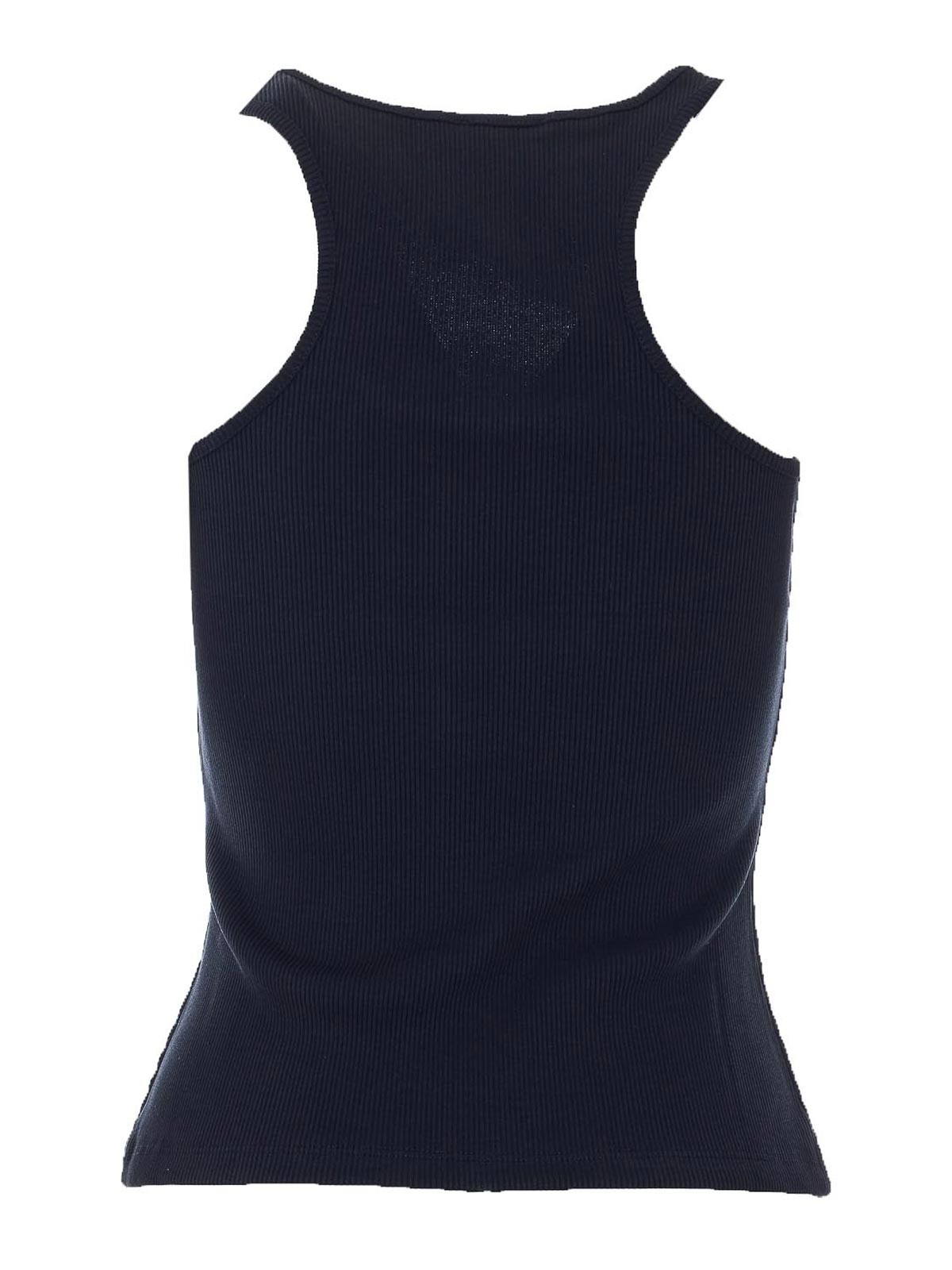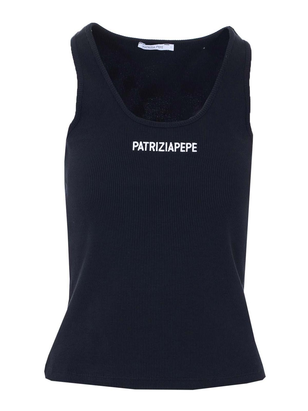 パトリツィアペペブラックタンクトップ、前面にロゴ刺繍、ノースリーブ