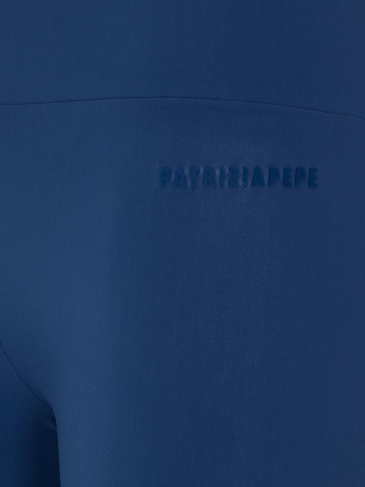 Patrizia pepe ブルーレギンス、前面にトーンオントーンのロゴプリント、伸縮性のあるフィット