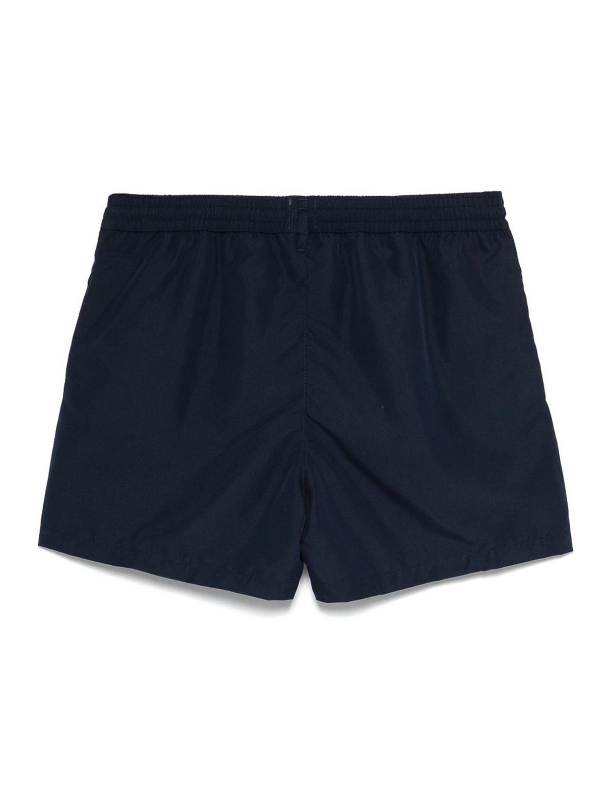 ミッドナイトブルー、伸縮性のあるドローストリングのウエストバンド、2つのサイドインセットポケット。自分の服の上から水着を試着するように注意してください。