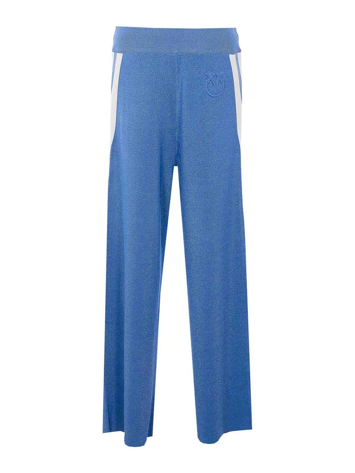 Pinko ライトブルーのトーメンタパンツ、ウエストにゴム入り、クーリスクロージャー、ルレックス、伸縮性のあるフィット、サイドポケット