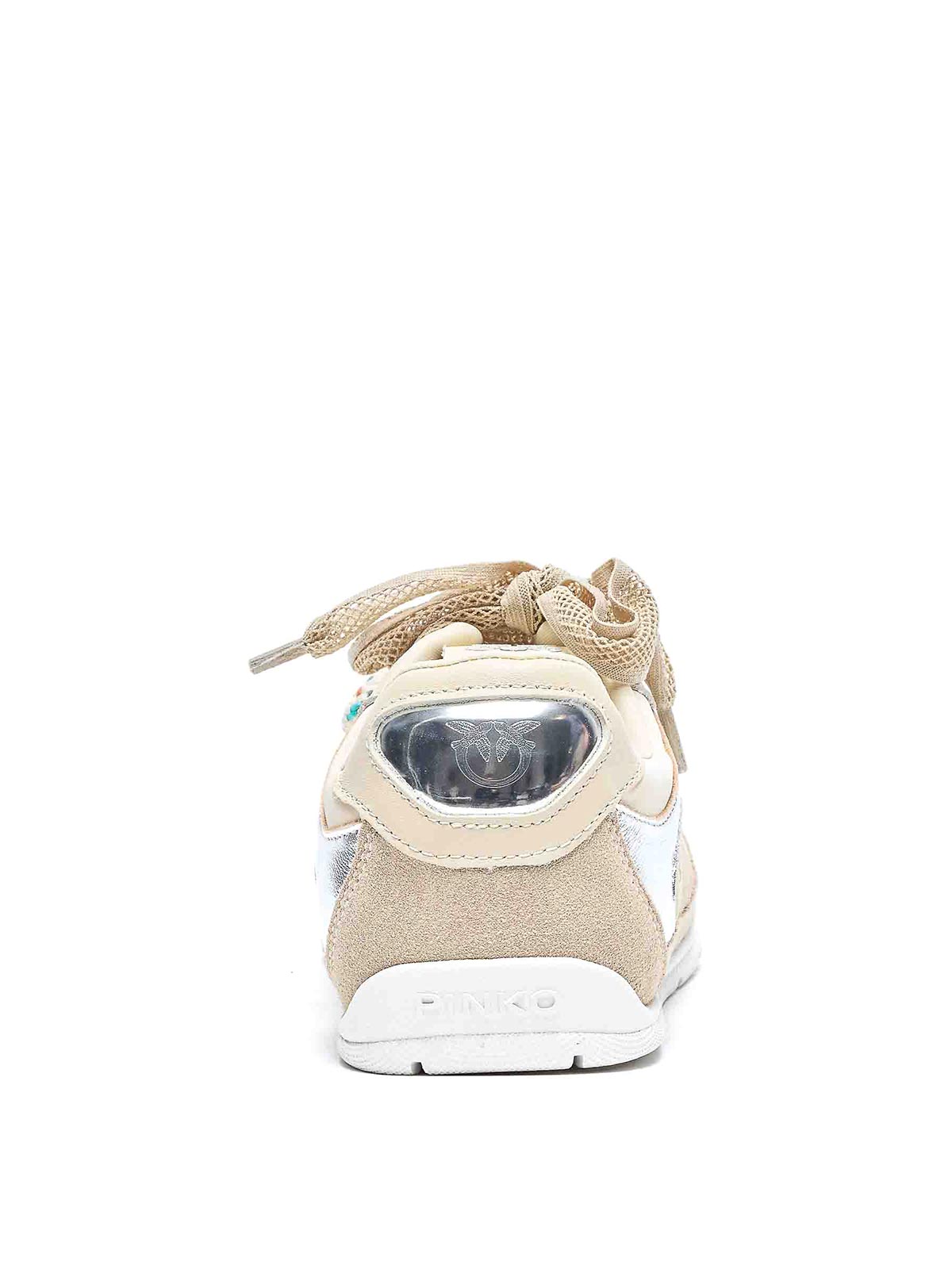 Pinko ベージュユリアスニーカー、ラウンドトウ、ラテラルトーンオントーンロゴ、ダブルレースクロージャー