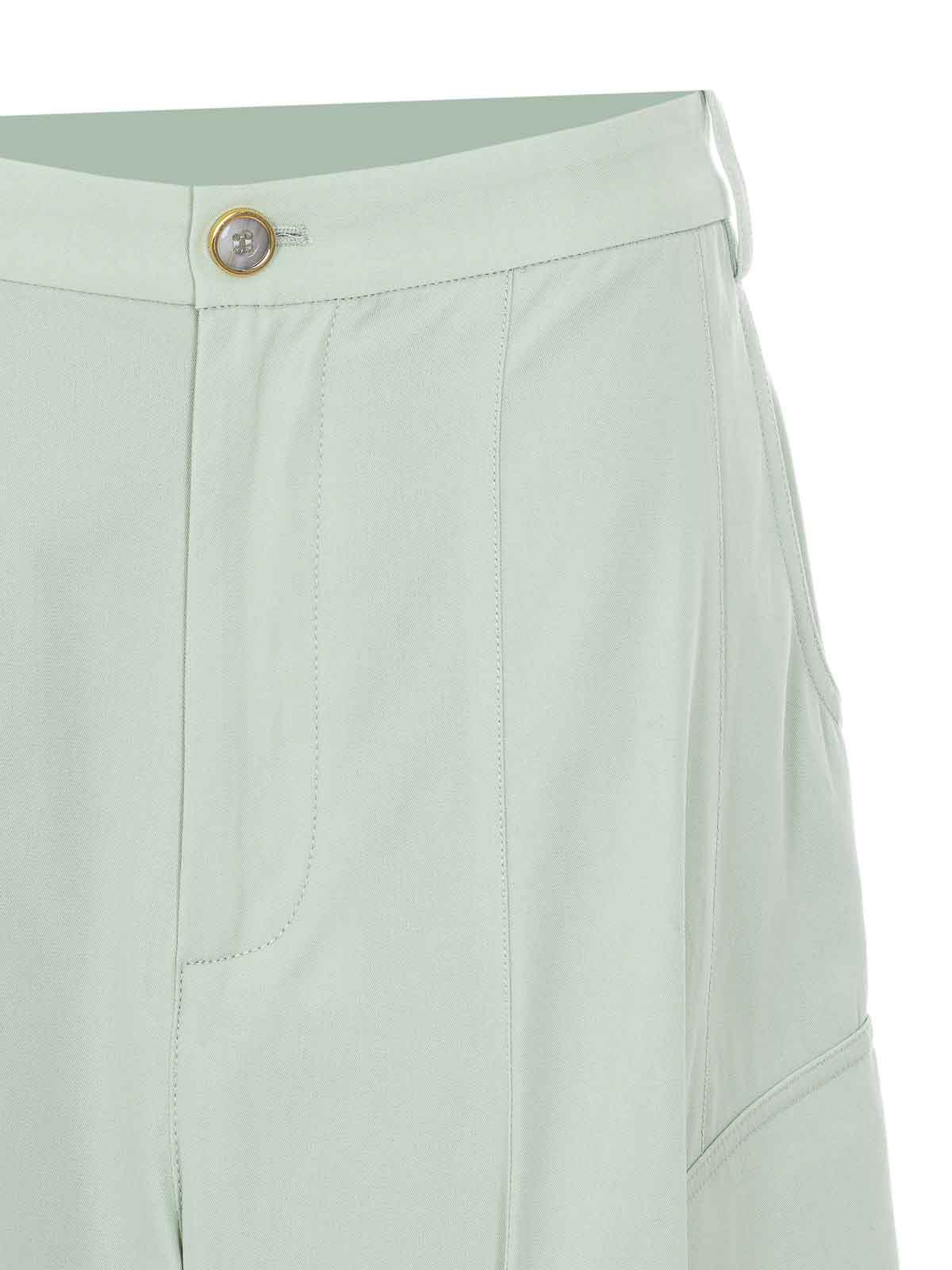 Pinko ライトグリーンのロザリンパンツ、ファスナーとボタン留め、カーゴエフェクト、ジュエリーボタン付き横ポケット