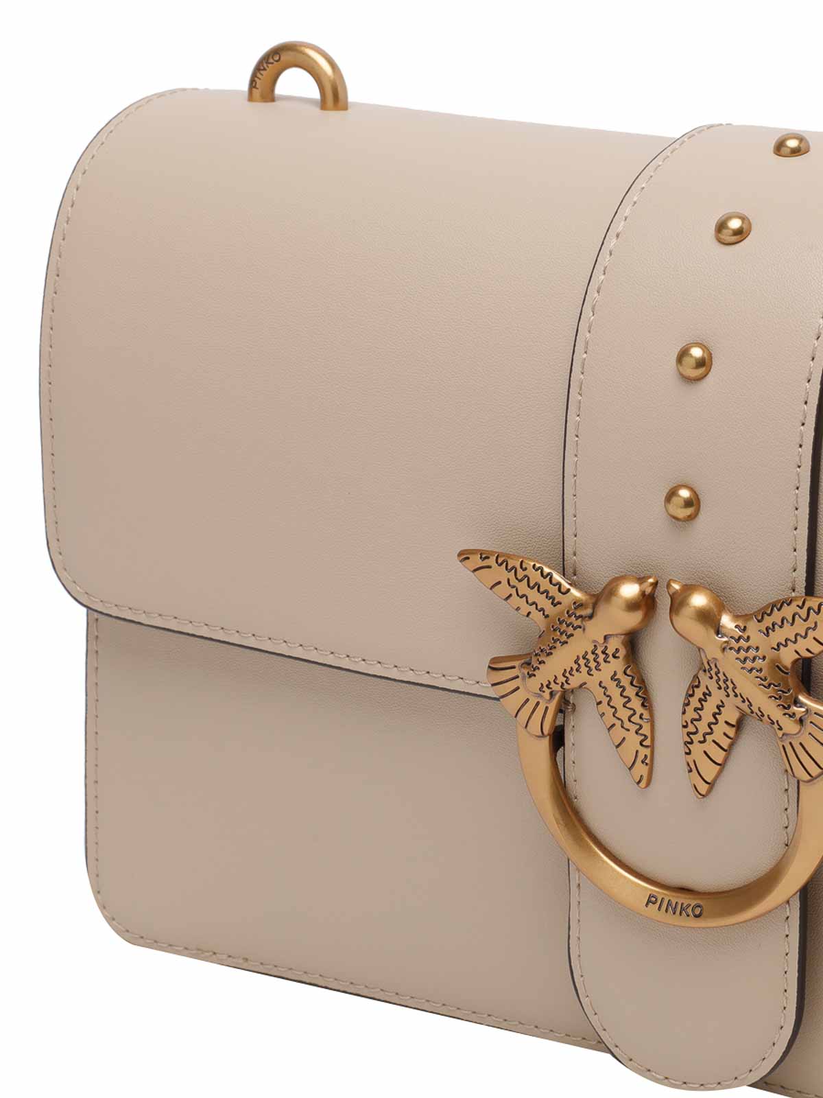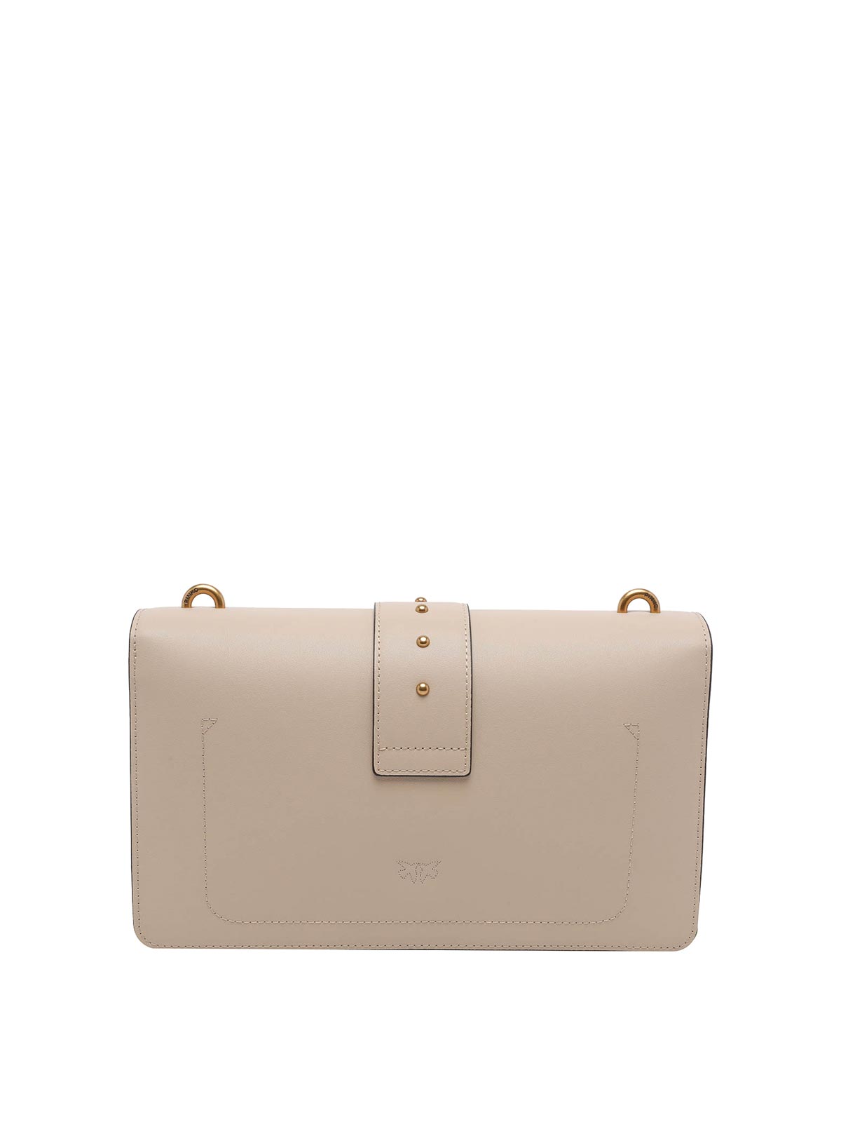 Pinko beige love one クラシッククロスボディバッグ、マグネットクロージャー、中央にファスナー付きポケット、2つのセクション、取り外し可能で調整可能なストラップ、正面に金色のロゴクロージャー
