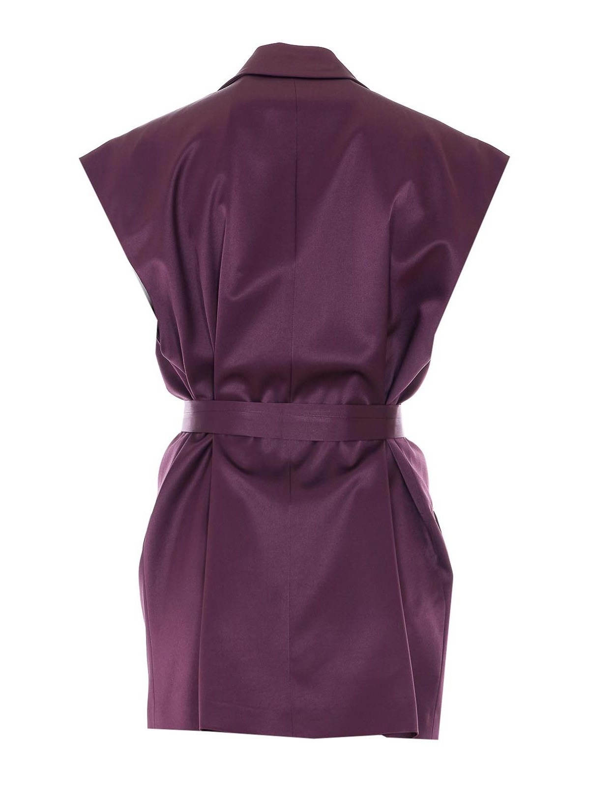 Pinko パープルメランザナベスト、ロゴクロージャー付きフロントボタン付き、ノースリーブ、Vネック、ウエストにベルト