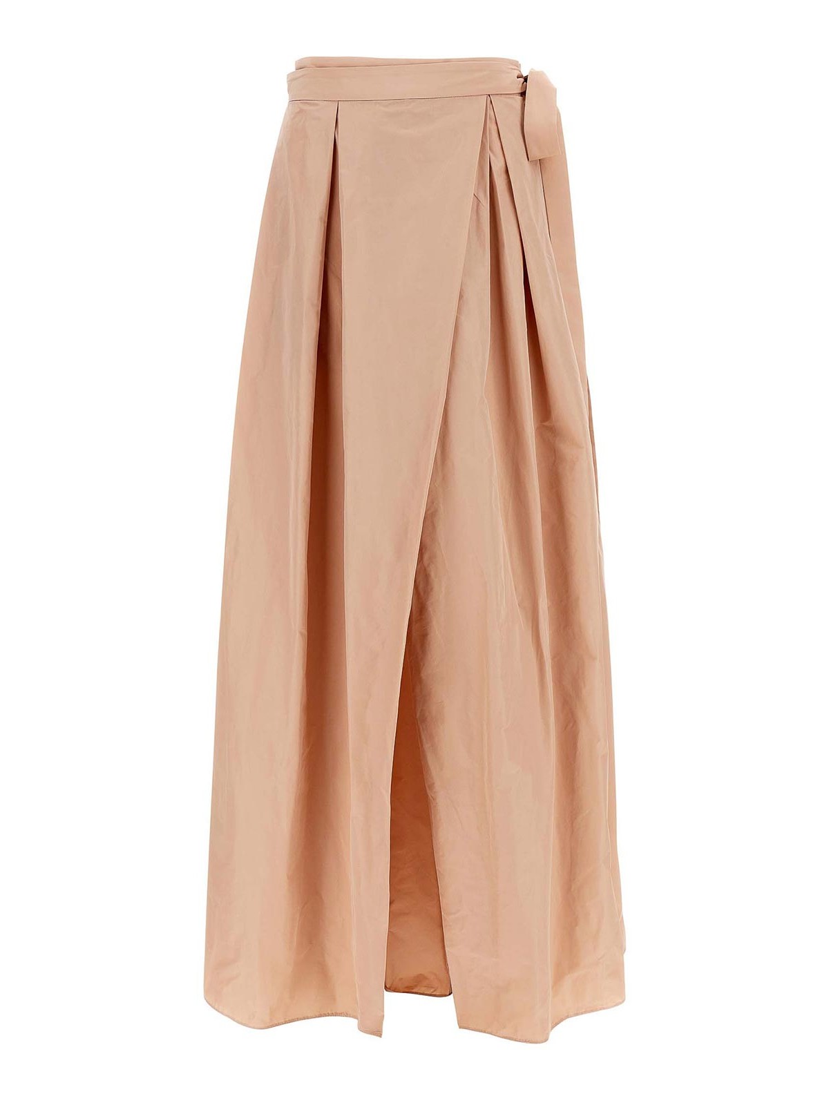 Raponzoloのロングタフタスカートは、前後にピンサーが付いたフレアシルエット、サイドレースクロージャー、ポケット、裏地なしのウォレットスタイル。