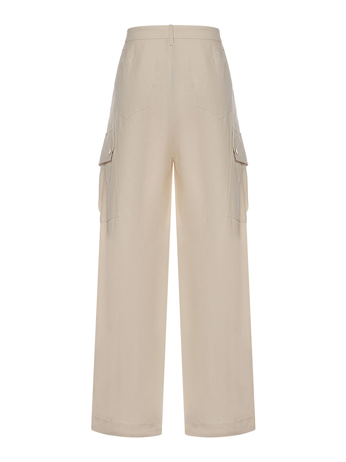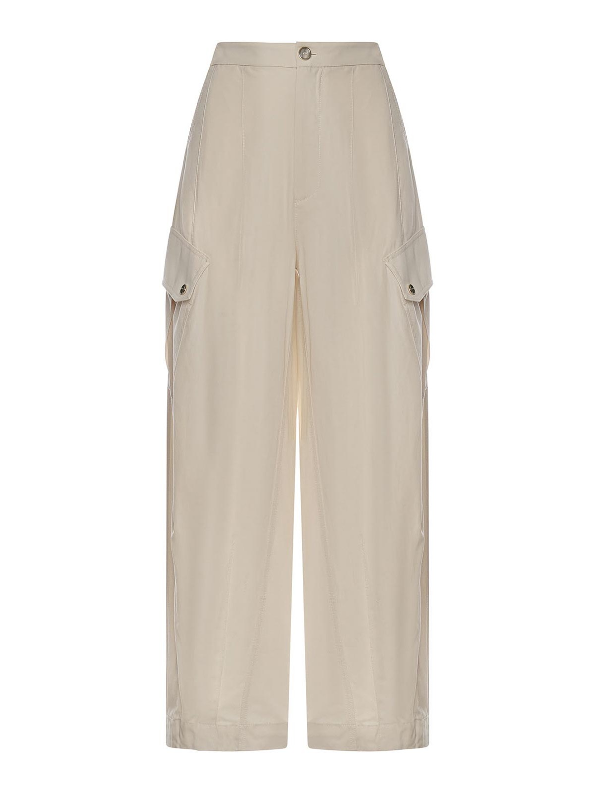純綿ツイル製、パッチポケット、ベルトループ、下部にドローストリング、表示サイズは36、デザイナーカラー:クリームホワイト