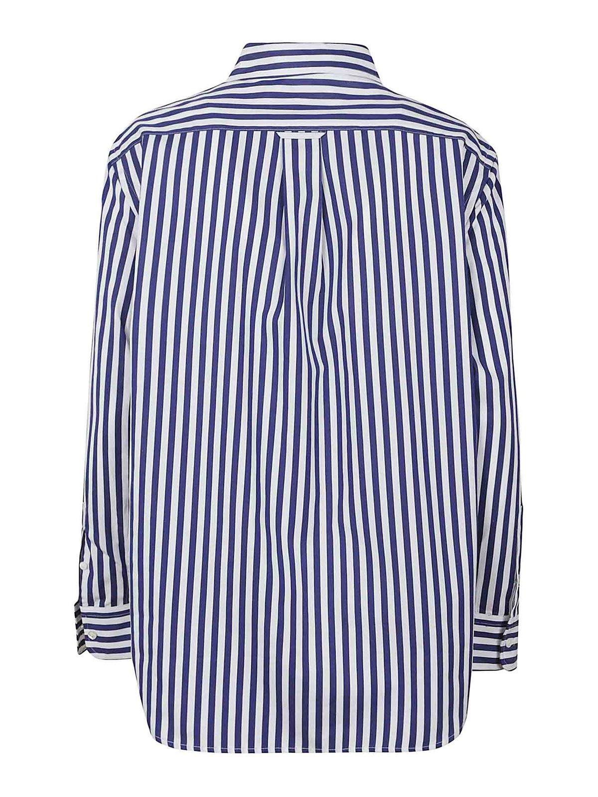 ストライプ柄ローイングストリングカラーレースのサテンシャツ。パルスボタンとアイコニックなロゴの縁がフィット感を高めます。