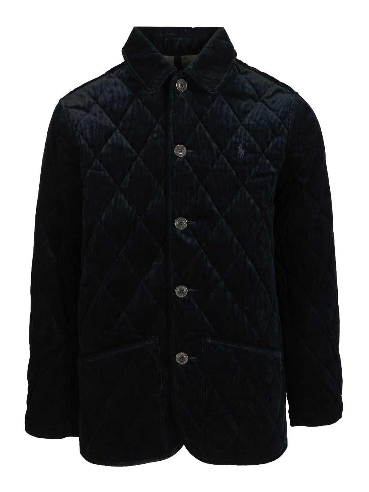ストレートカラー。ボタンプラケット。限定ポロラルフローレンのロゴボタン。ロングスリーブ。フロントパッチポケット2つ。隠しスナップ付きダブルベント。裏地付きでパッド入り。左胸には高級ポニーの刺繍。この製品はリサイクルポリエステル製です。