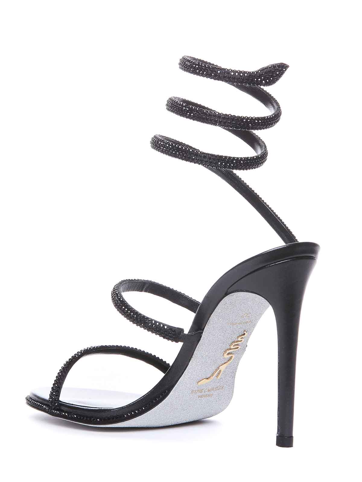 Ren caovilla ブラックレザーサンダル、オープントゥ、レザーアッパー、レザーソール