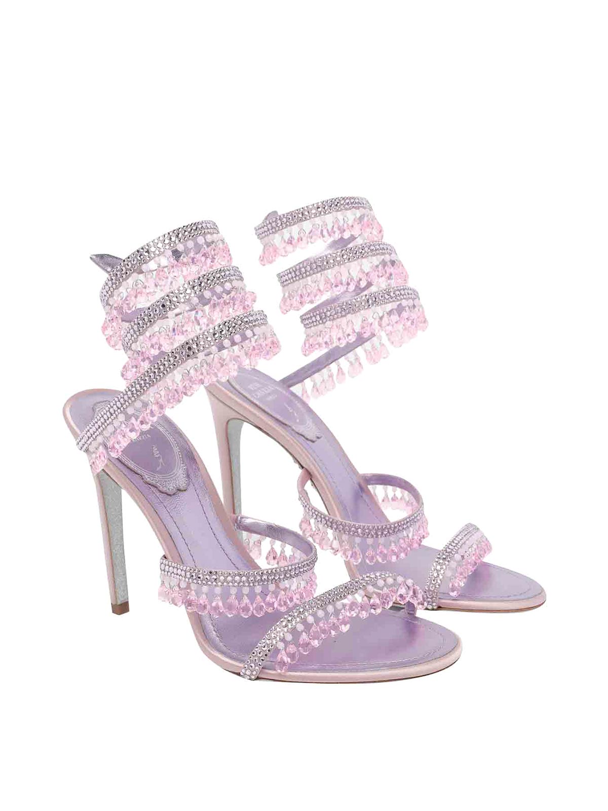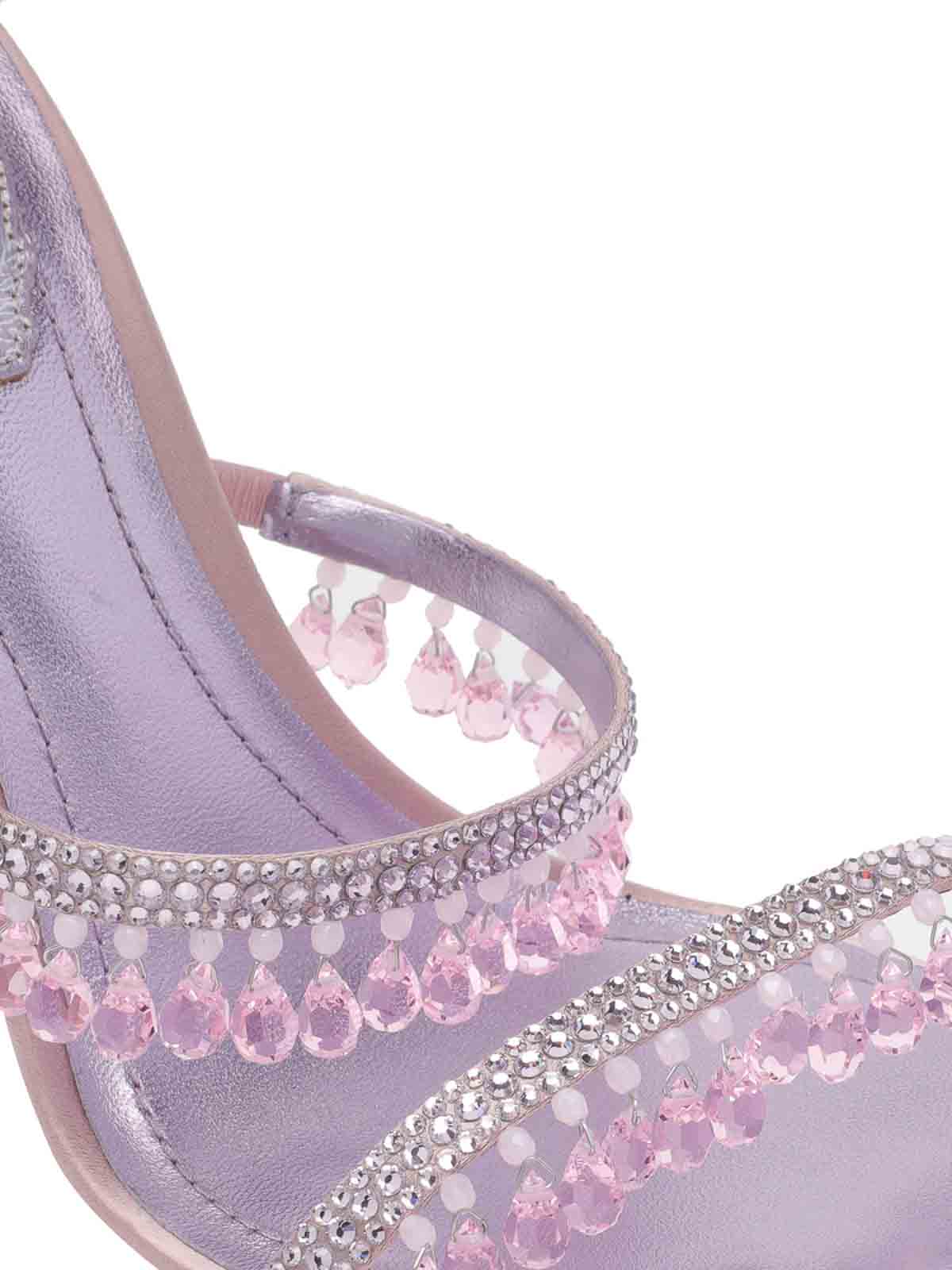 Ren caovilla シャンデリアサンダル 105、オープントゥ、クリスタルディテール、オープントゥ、レザーディテール、レザーソール