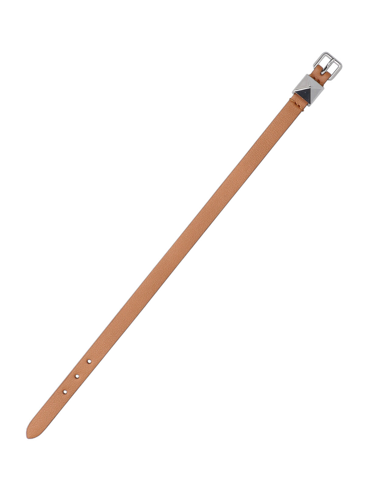 ブラウンカーフスキンのバレンチノガラヴァーニロックスタッズブレスレット、調節可能なストラップ、前面にシルバーメッキ真鍮のロックスタッズディテール