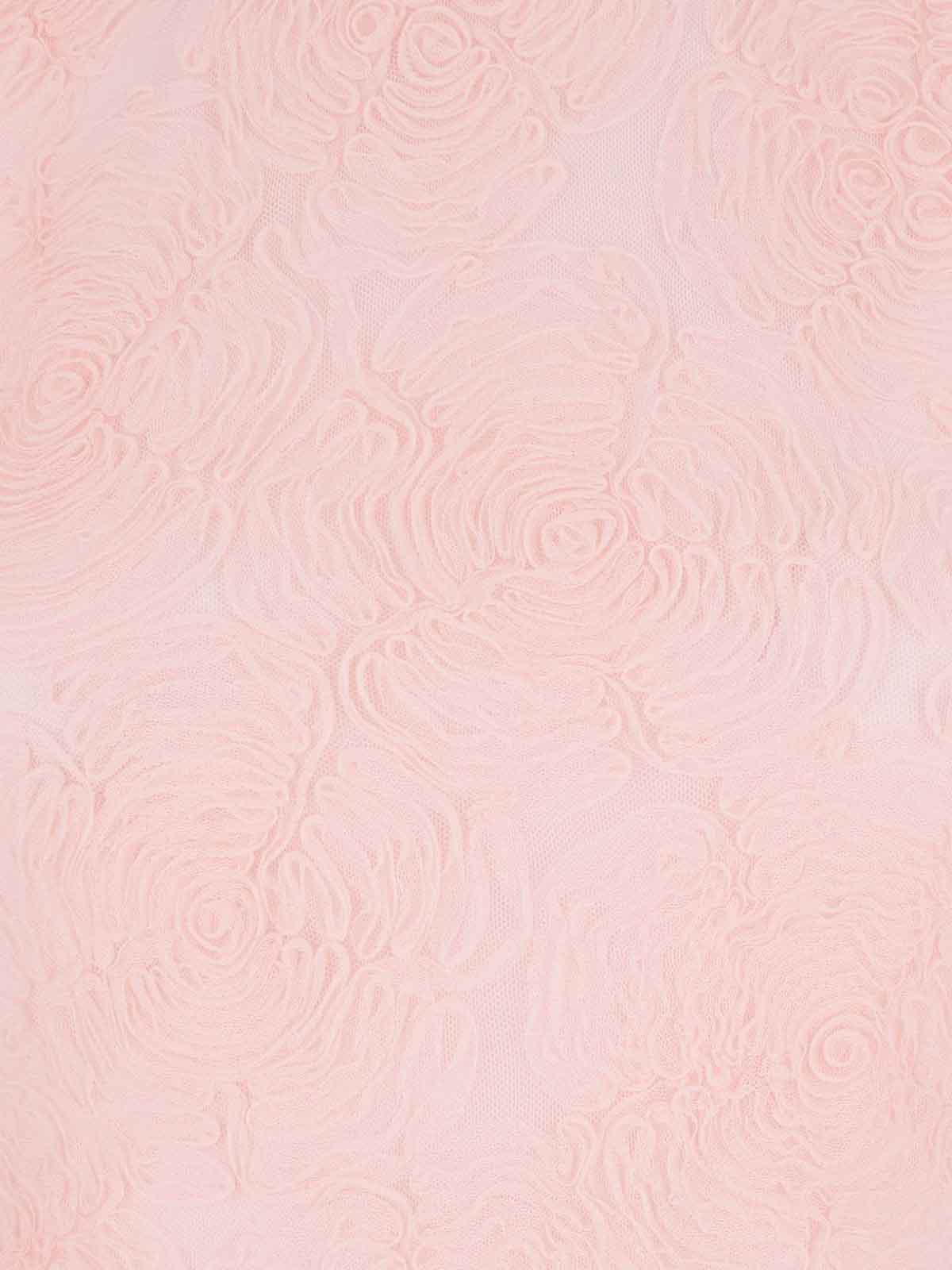 ピンクの花柄の刺繍をローテーションで施したロングドレスで、ロマンチックな装いや特別な機会に最適です。