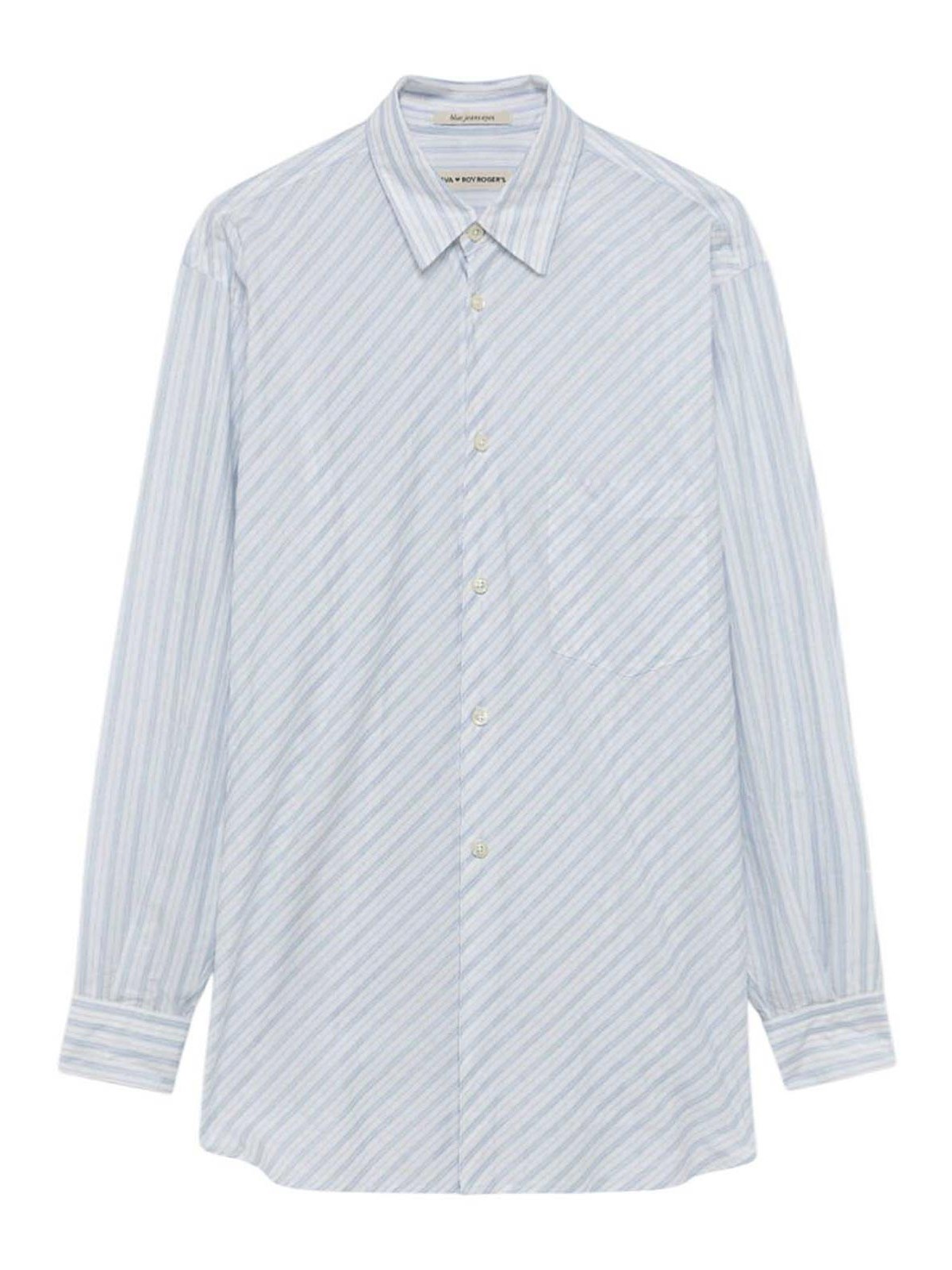 ロイ・ロジャーズ、エヴァ・ザ・カプセル、すべてイタリア製。ストライプ柄のコットンポプリンで作られたシャツは、ゆったりとした現代的なシルエットが特徴です。ボタン付きのショルダーエポレット、クラシックな襟、ボタン付きのフロントクロージャーがデザインを完成させます。ボタン付きの袖口と胸のフラットポケットがデザインを完成させ、背面のボックスと丸みを帯びた裾が衣服の構造を引き立てます。、ストライプ柄のコットンポプリン、ボタン付きショルダーパッチ、クラシックカラー、ボタン付きフロントクロージャー、ボタン付きカフス付きロングスリーブ、胸にフラットポケット、バックにボックス、丸みを帯びた裾、ルーズフィット。