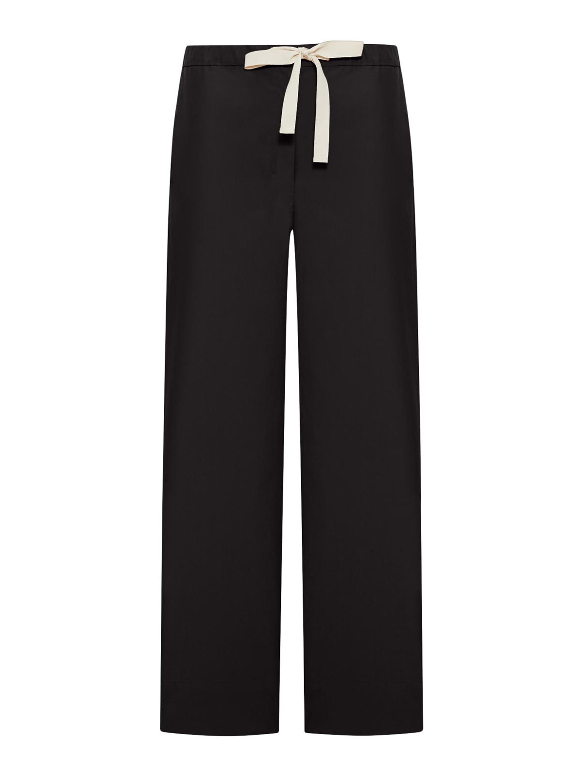 ピュアコットンポプリンパンツ、ストレートレッグ、カバードファスナーとフッククロージャー、サイドにスラントポケット、ストレートヘム、100%コットン、色:黒