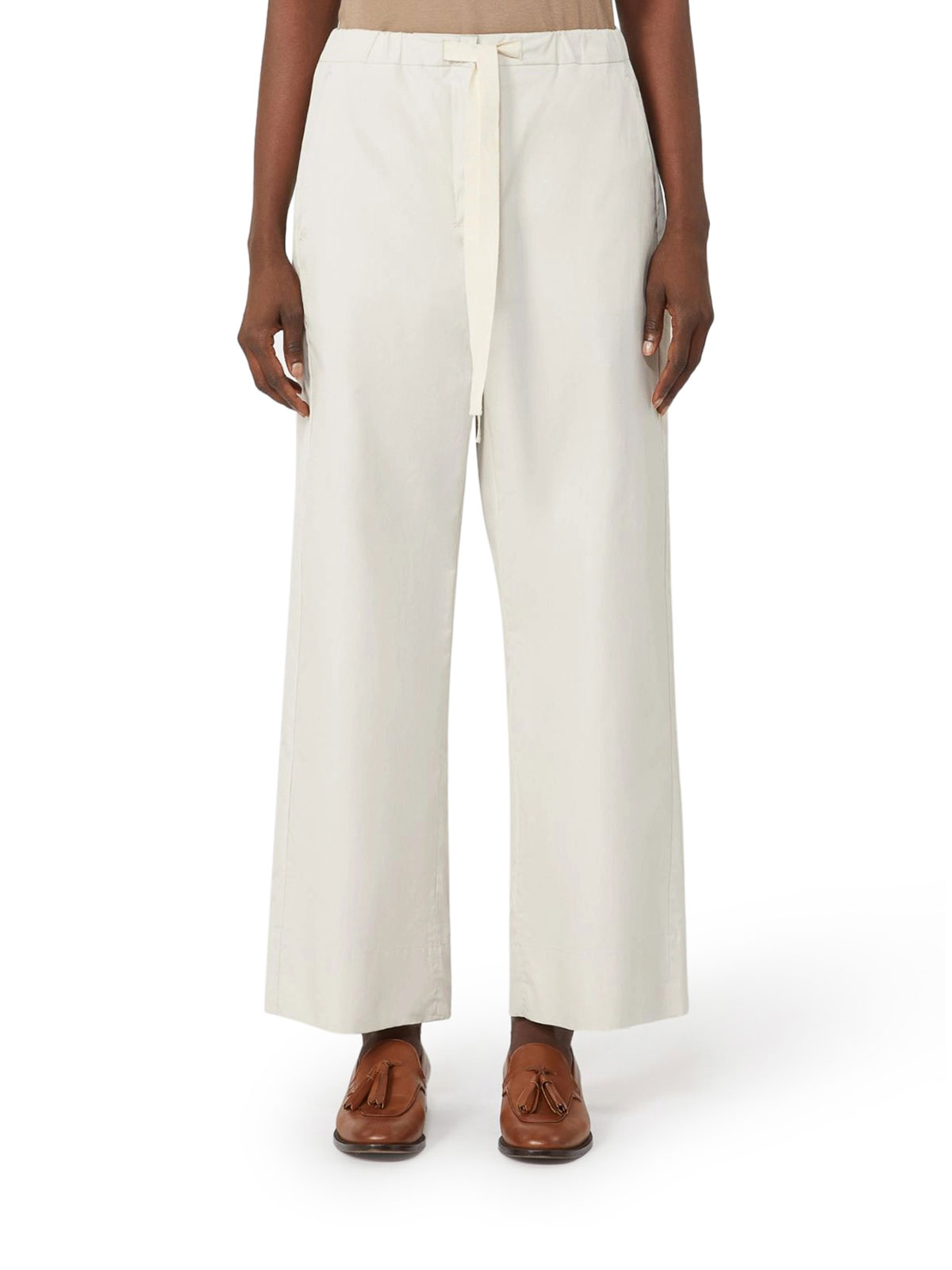 ピュアコットンポプリンパンツ、ストレートレッグ、カバードファスナーとフッククロージャー、サイドにスラントポケット、ストレートヘム、100%コットン、色:アイス