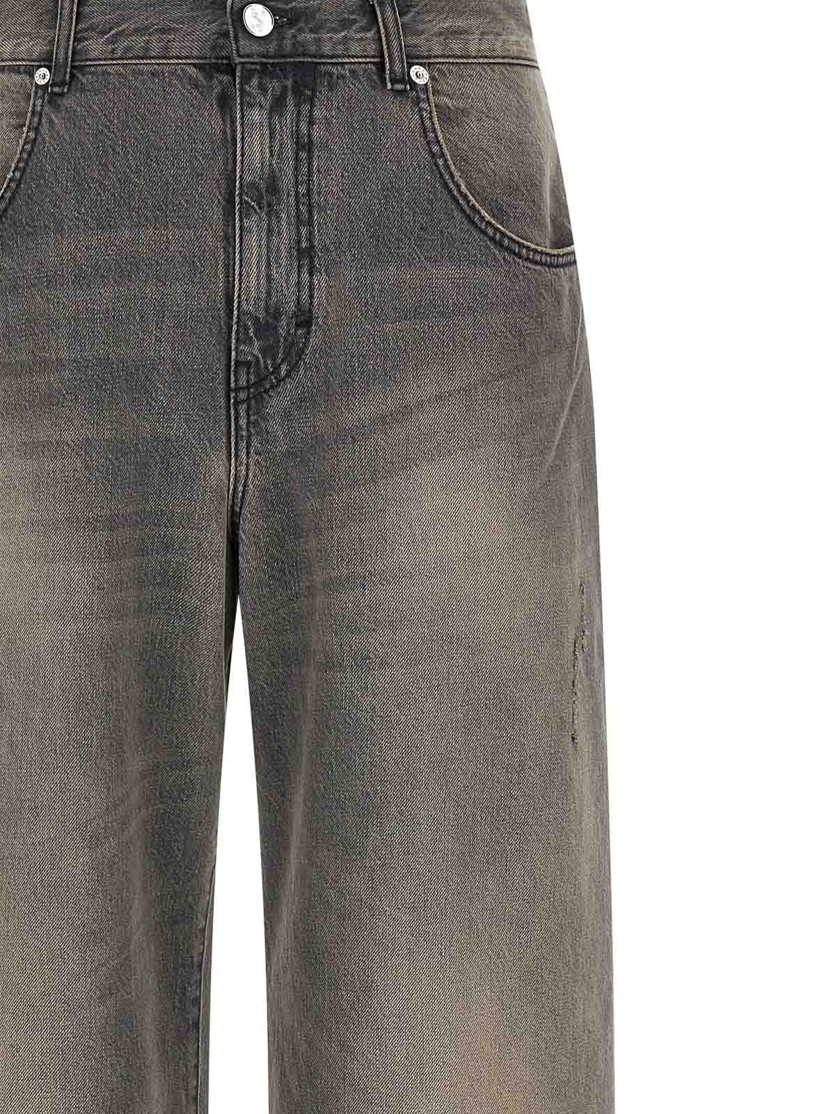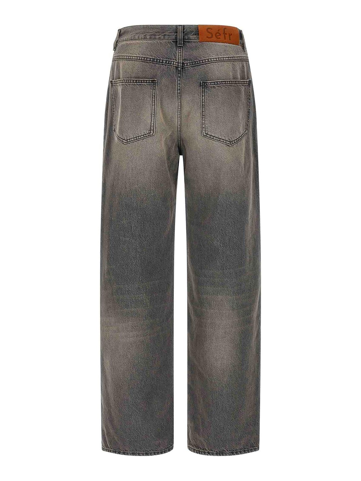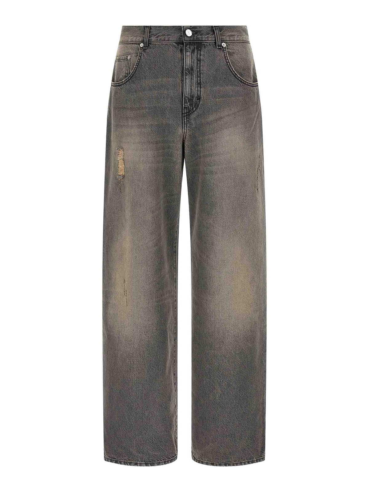 Mass Jeansのコットンデニムジーンズはユーズド加工が施されています。ミッドウエストに5ポケット、ワイドレッグ、フロントジッパーとボタンクロージャー、バックにスエードのロゴタグが付いています。