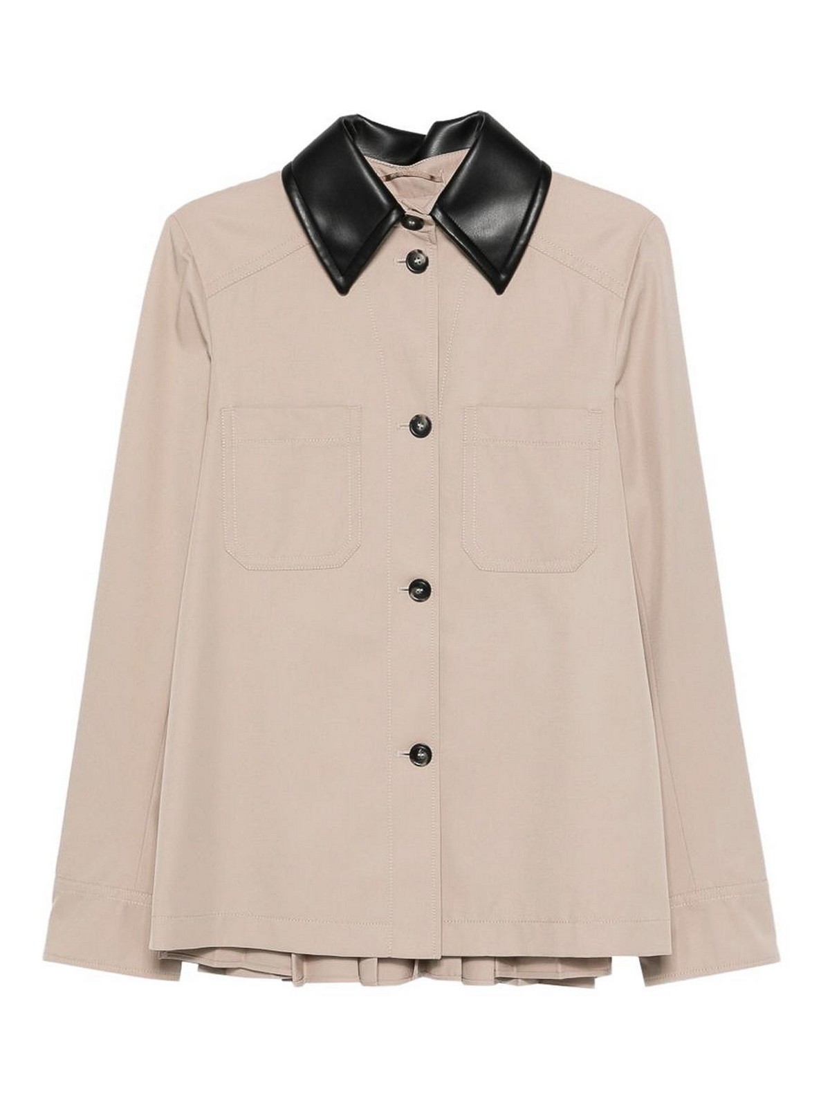 ベージュコントラストカラーフロントボタン留め長袖フロントパッチポケットプリーツバック